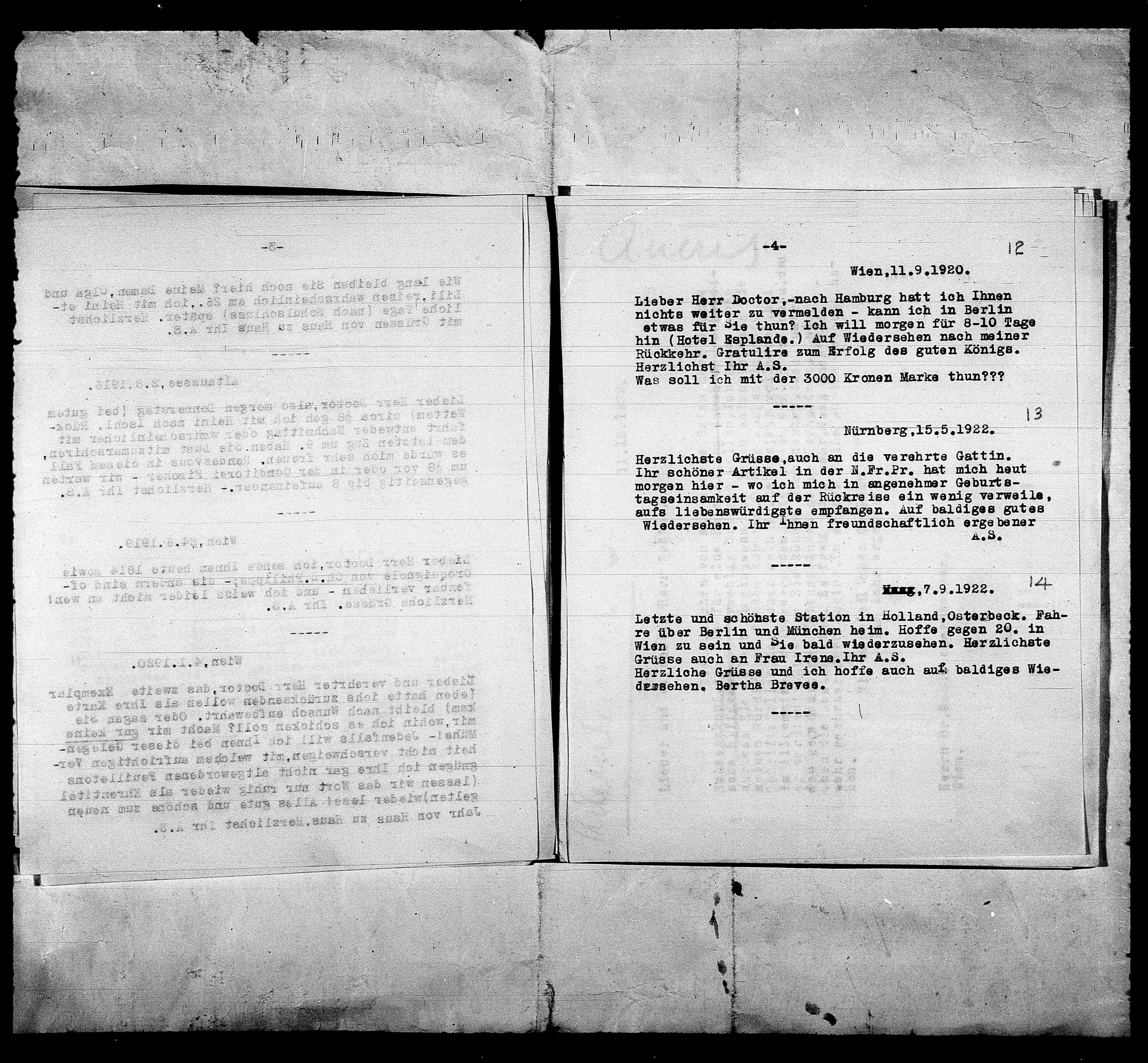 Grüsse auch an Frau Irene. Ihr A.S.