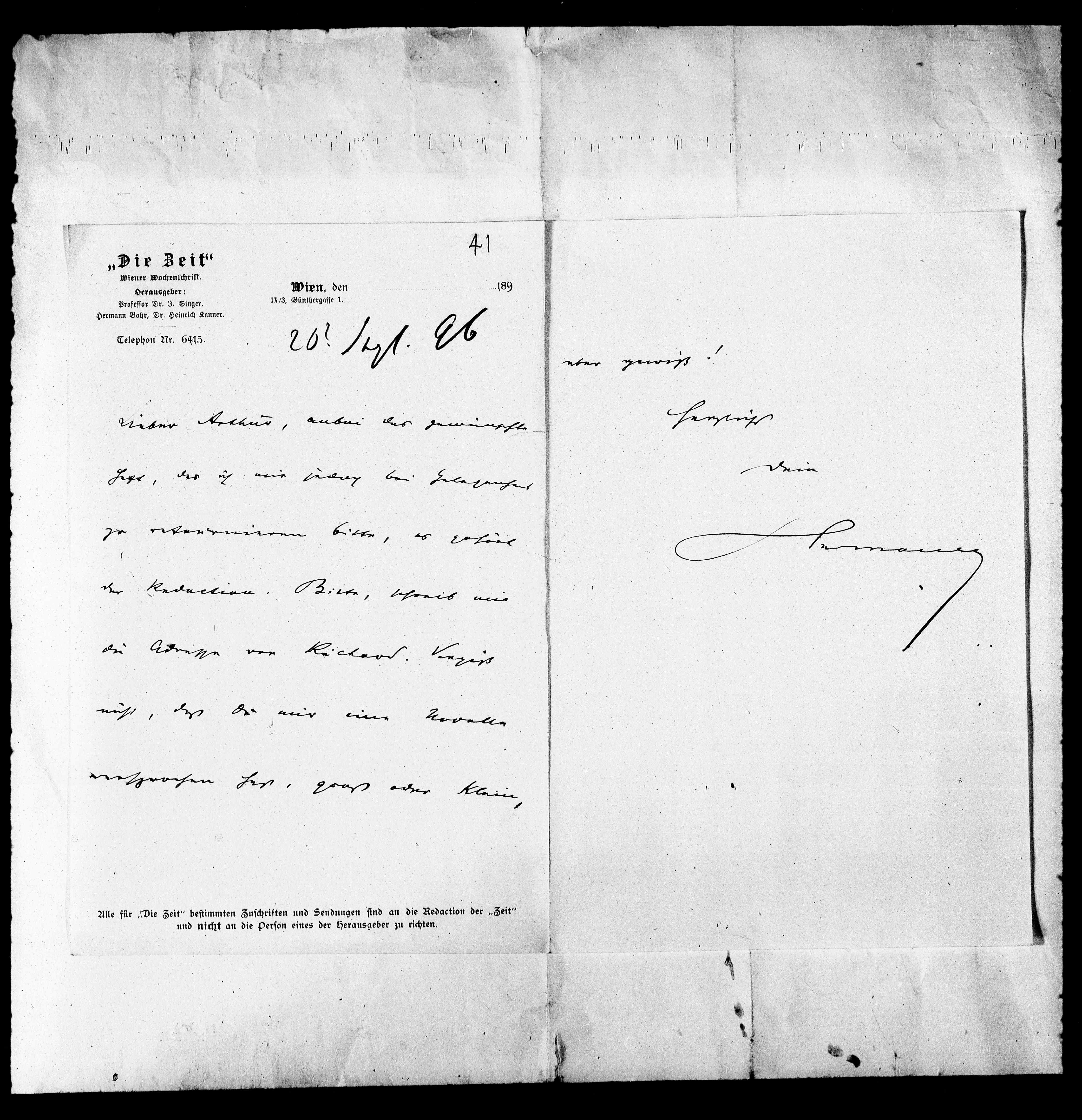 Alle für „Die Zeit“ bestimmten Zuschriften und Sendungen sind an die Redaction der „Zeit"
