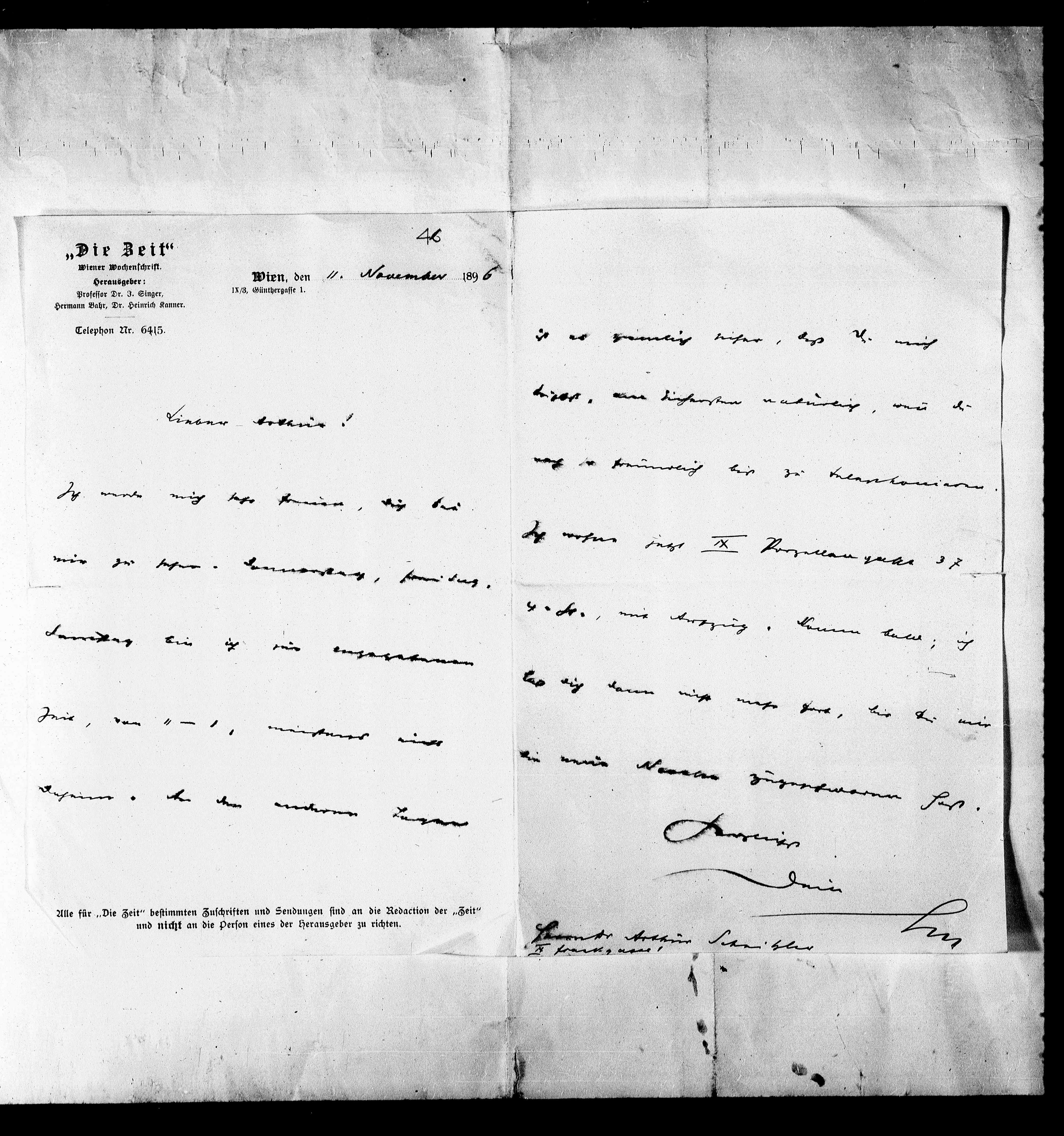 Alle für „Die Zeit“ bestimmten Zuschriften und Sendungen sind an die Redaction der „Zeit“