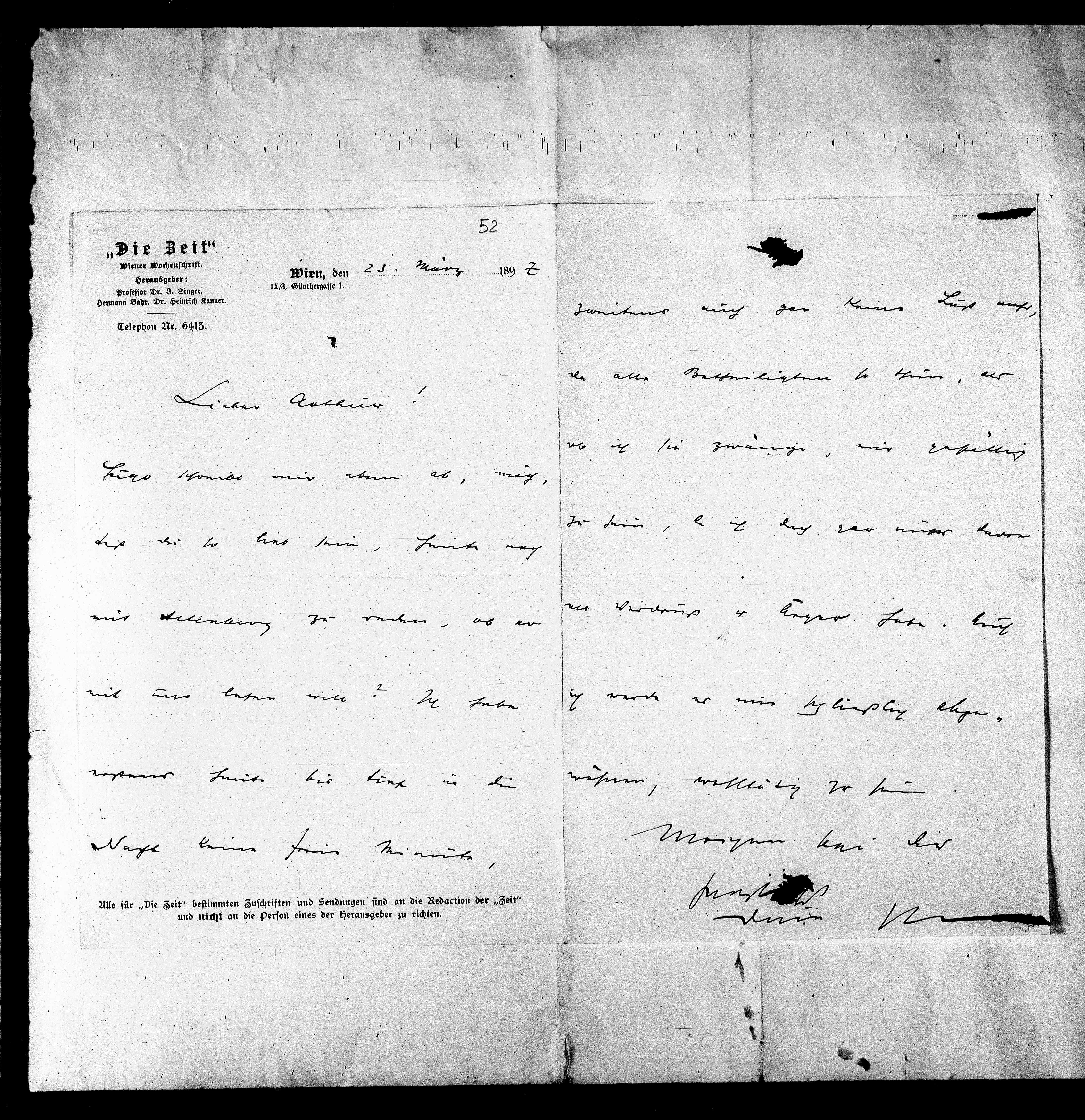 Alle für „Die Zeit“ bestimmten Zuschriften und Sendungen sind an die Redaction der „Zeit“