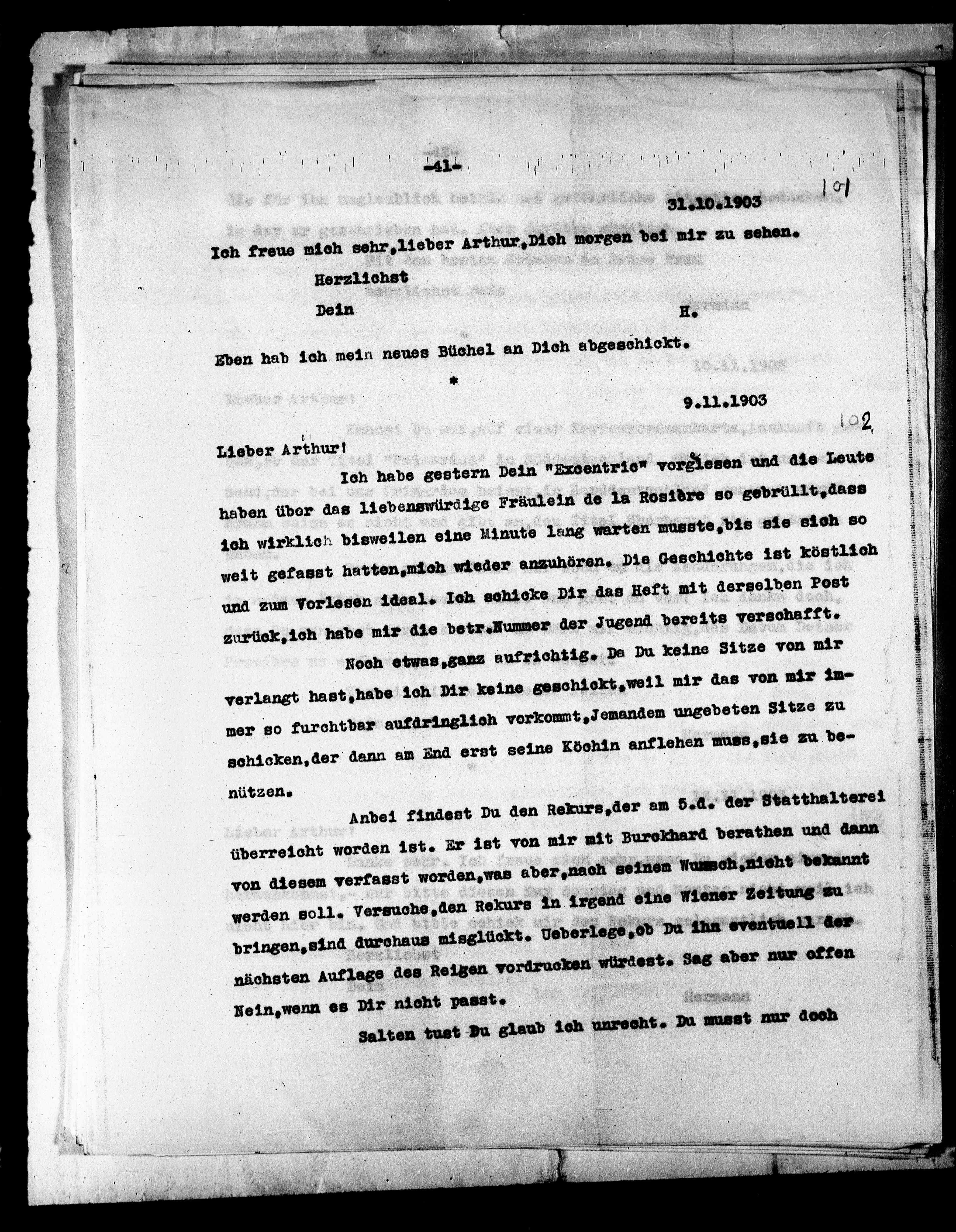 Ich freue mich sehr, lieber Arthur, Dich morgen bei mir zu sehen,