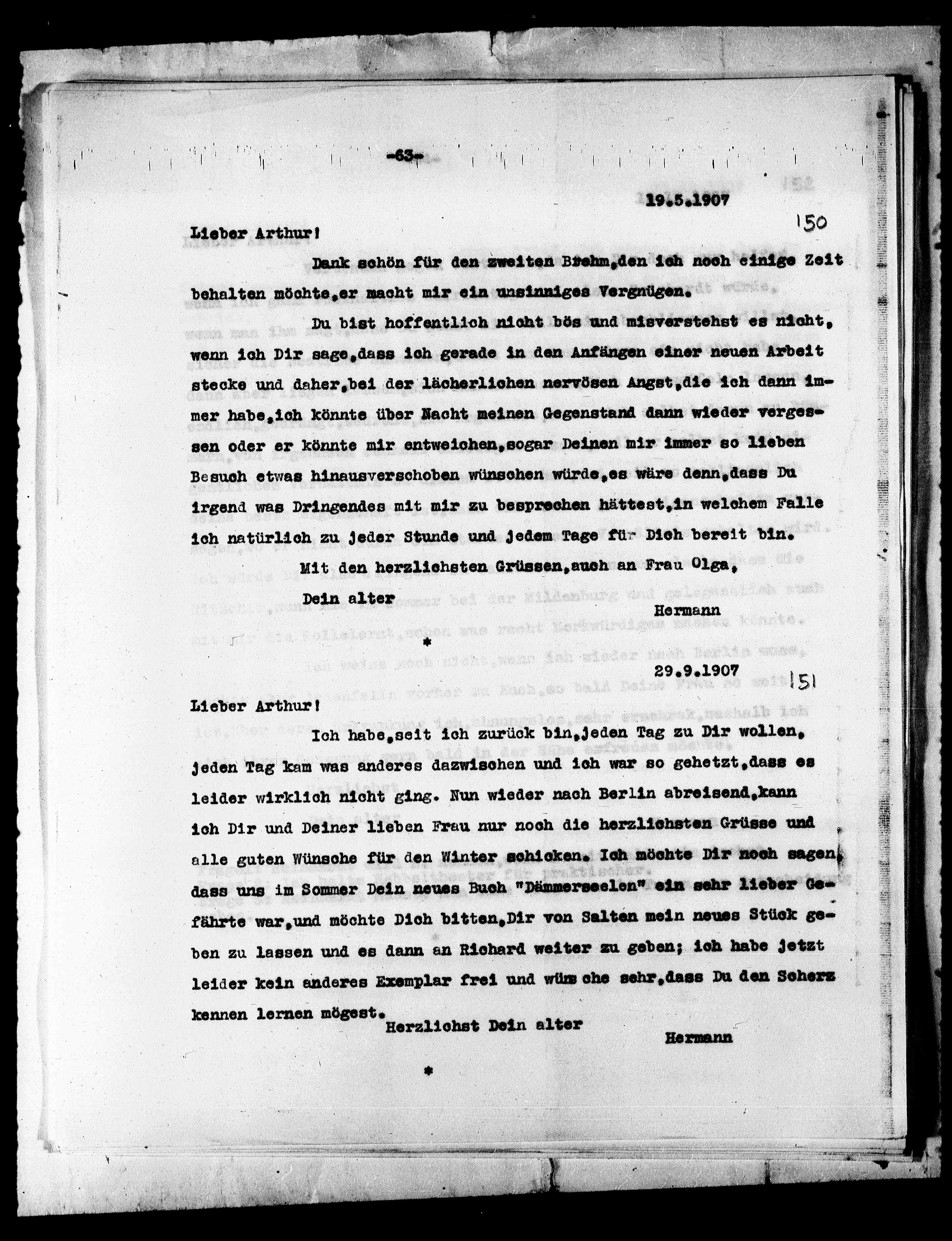 Mit den herzlichsten Grüssen, auch an Frau Olga,