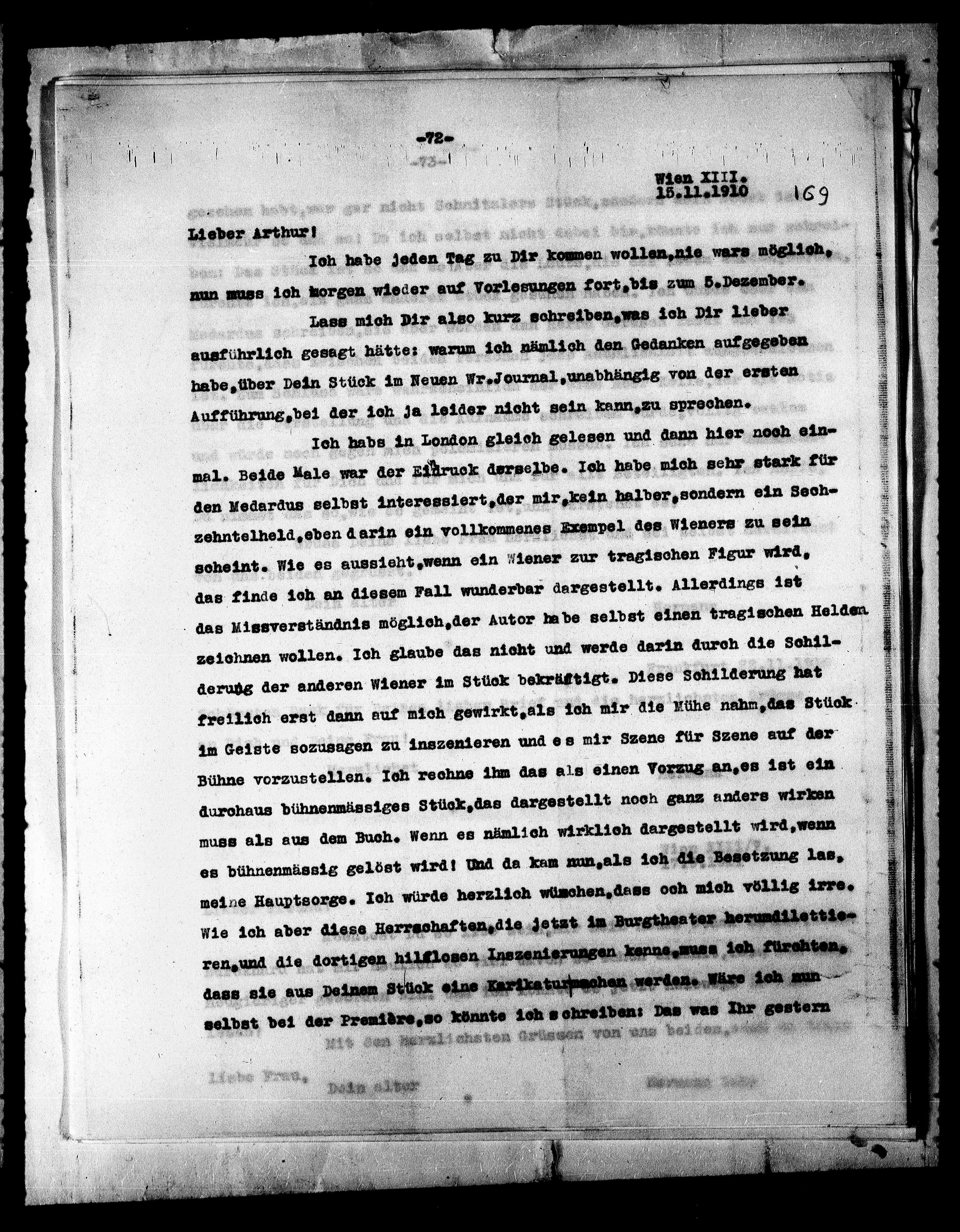 habe, über Dein Stück im Neuen Wr.Journal, unabhängig von der ersten
