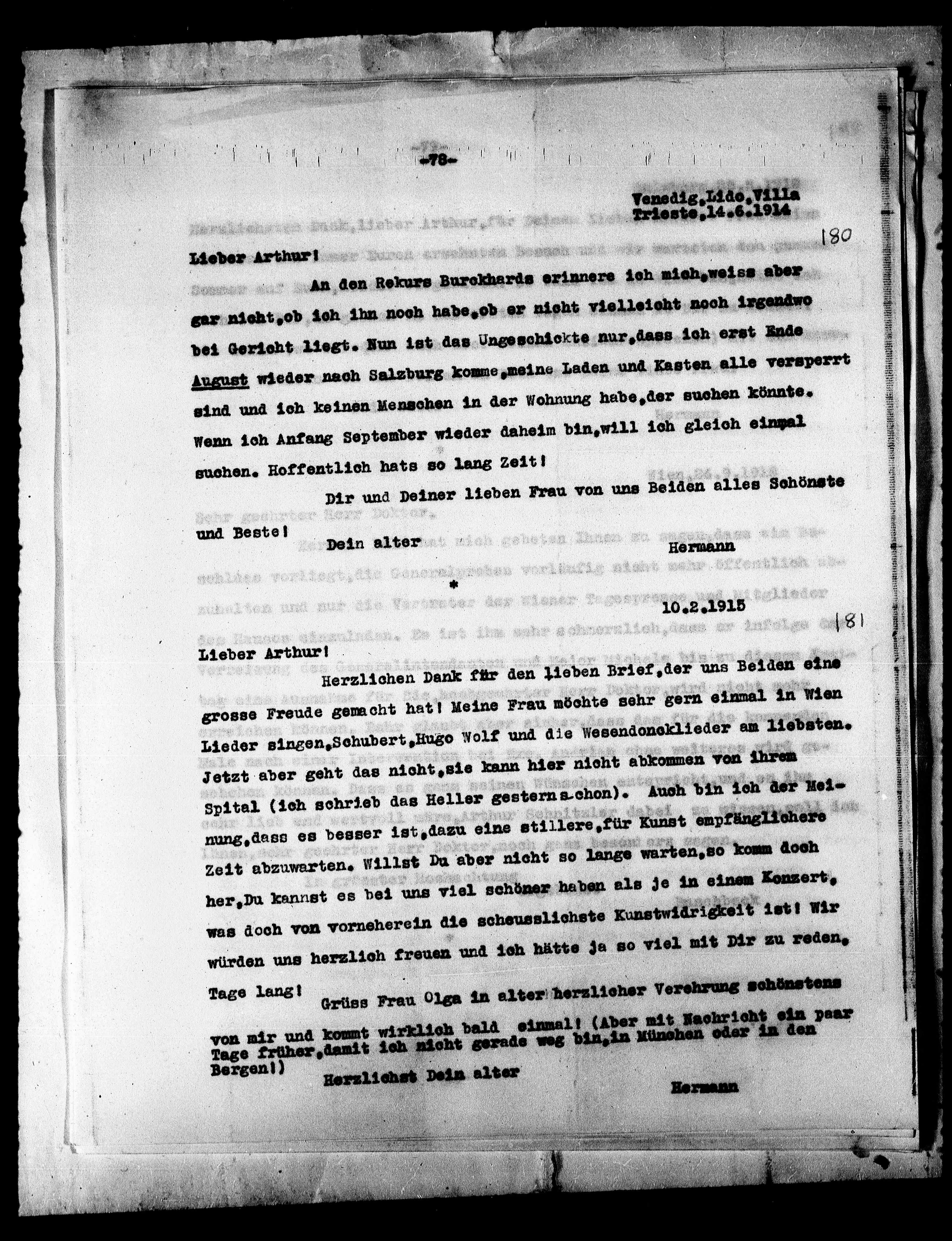 Grüss Frau Olga in alter herzlicher Verehrung schönstens