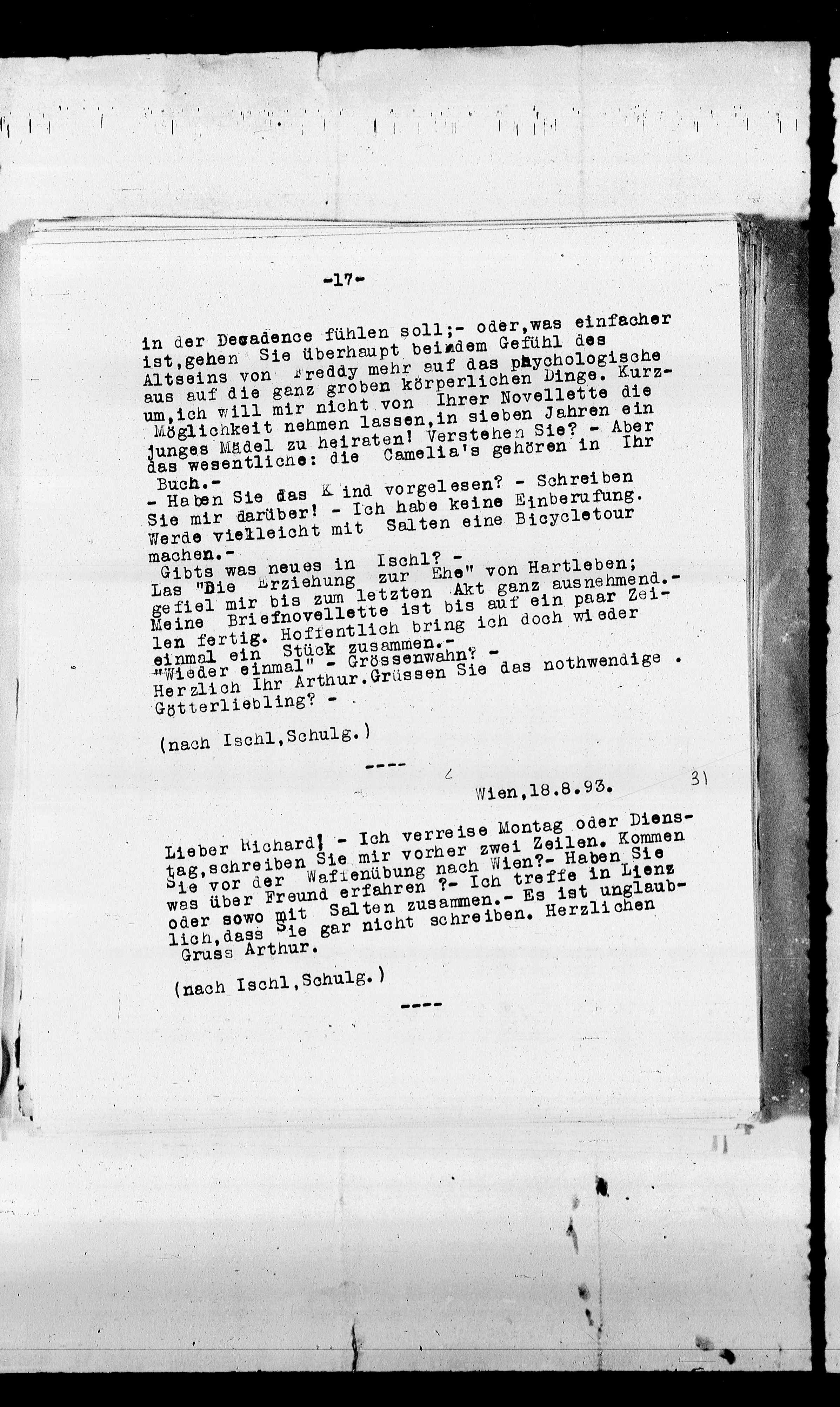 Lieber Richard! - Ich verreise Montag oder Diens-