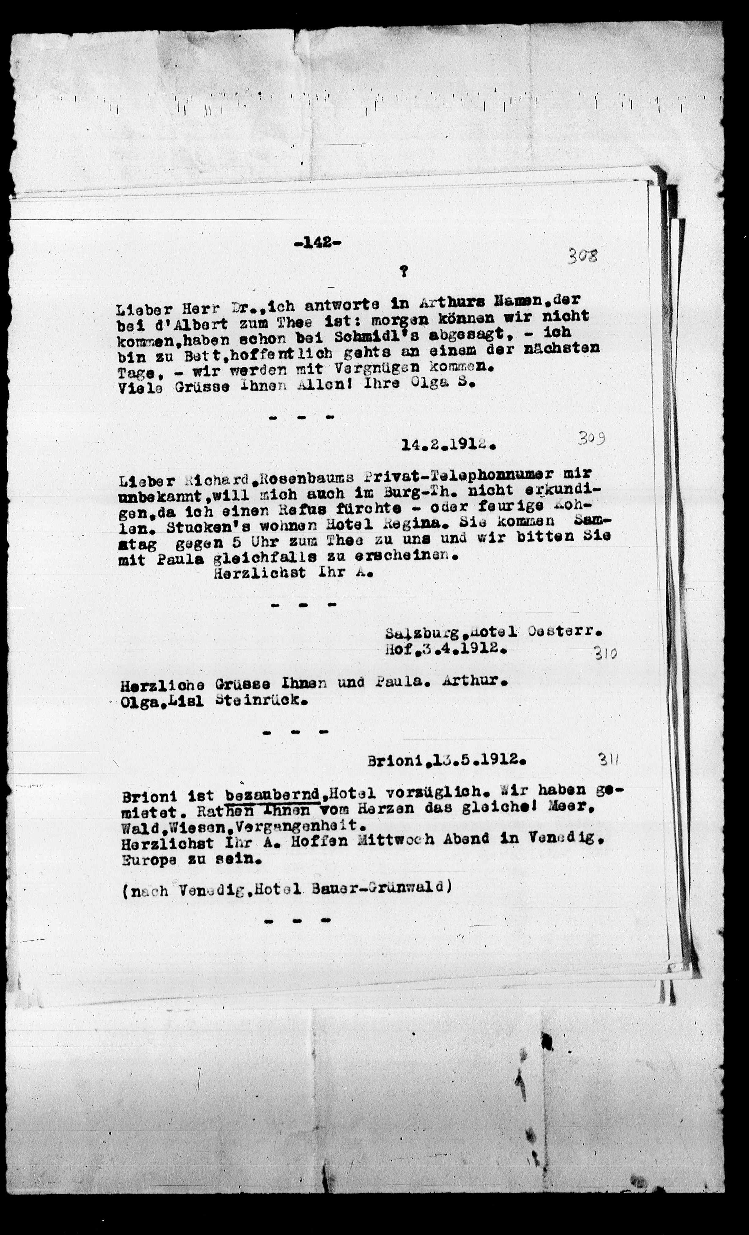 Herzlichst Ihr A. Hoffen Mittwoch Abend in Venedig,