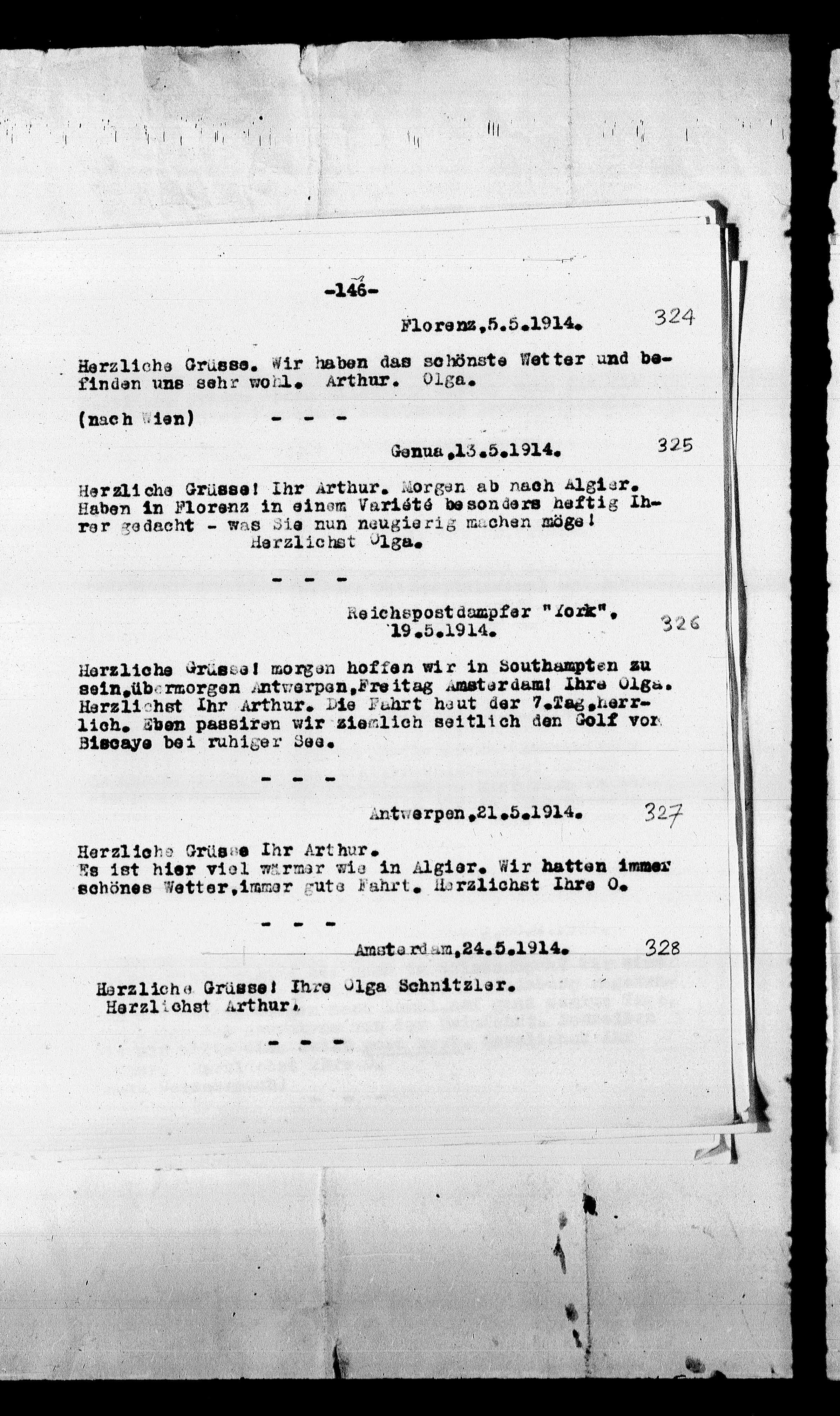 Herzliche Grüsse! Ihre Olga Schnitzler.