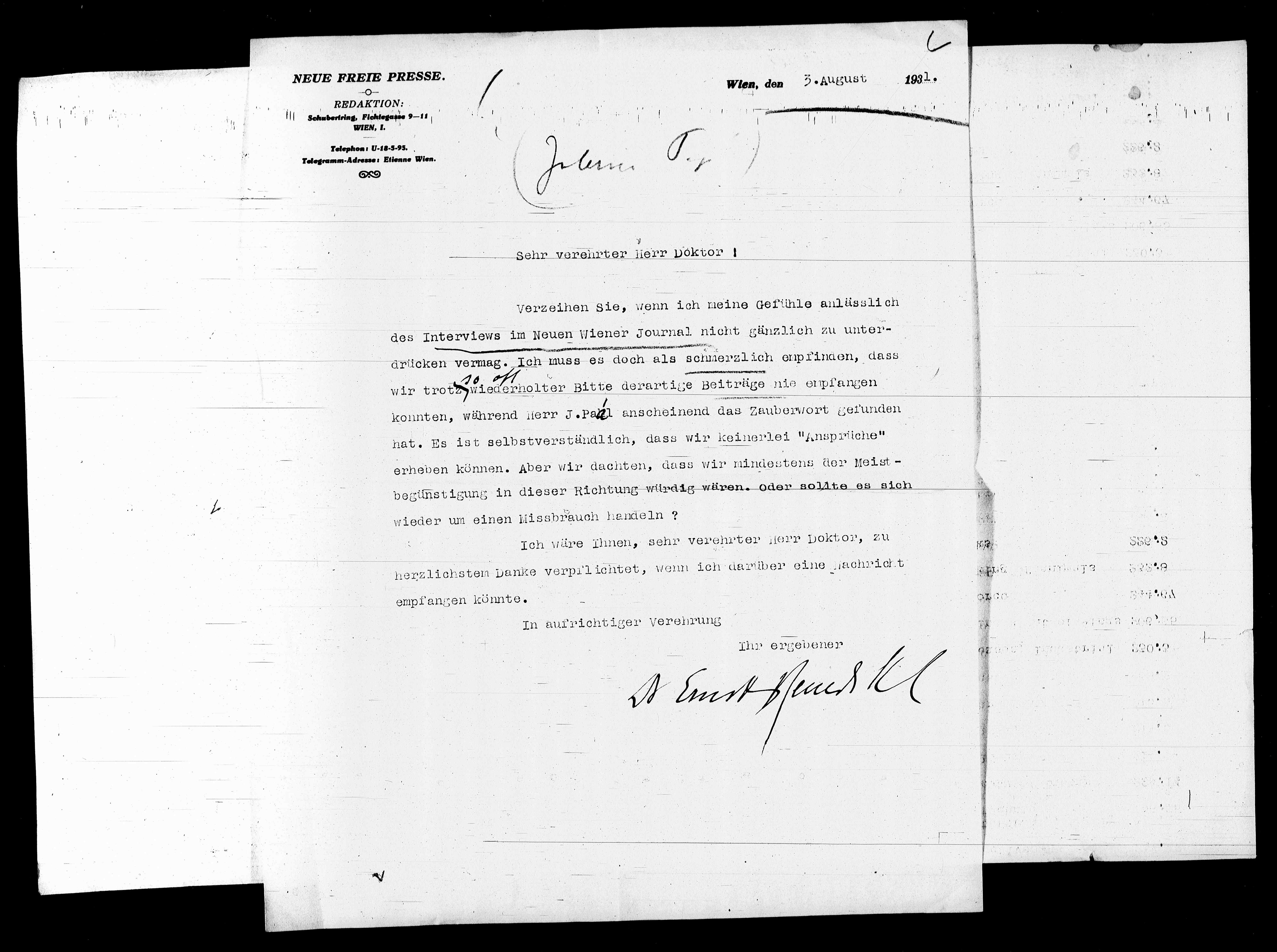 des Interviews im Neuen Wiener Journal nicht gänzlich zu unter¬
