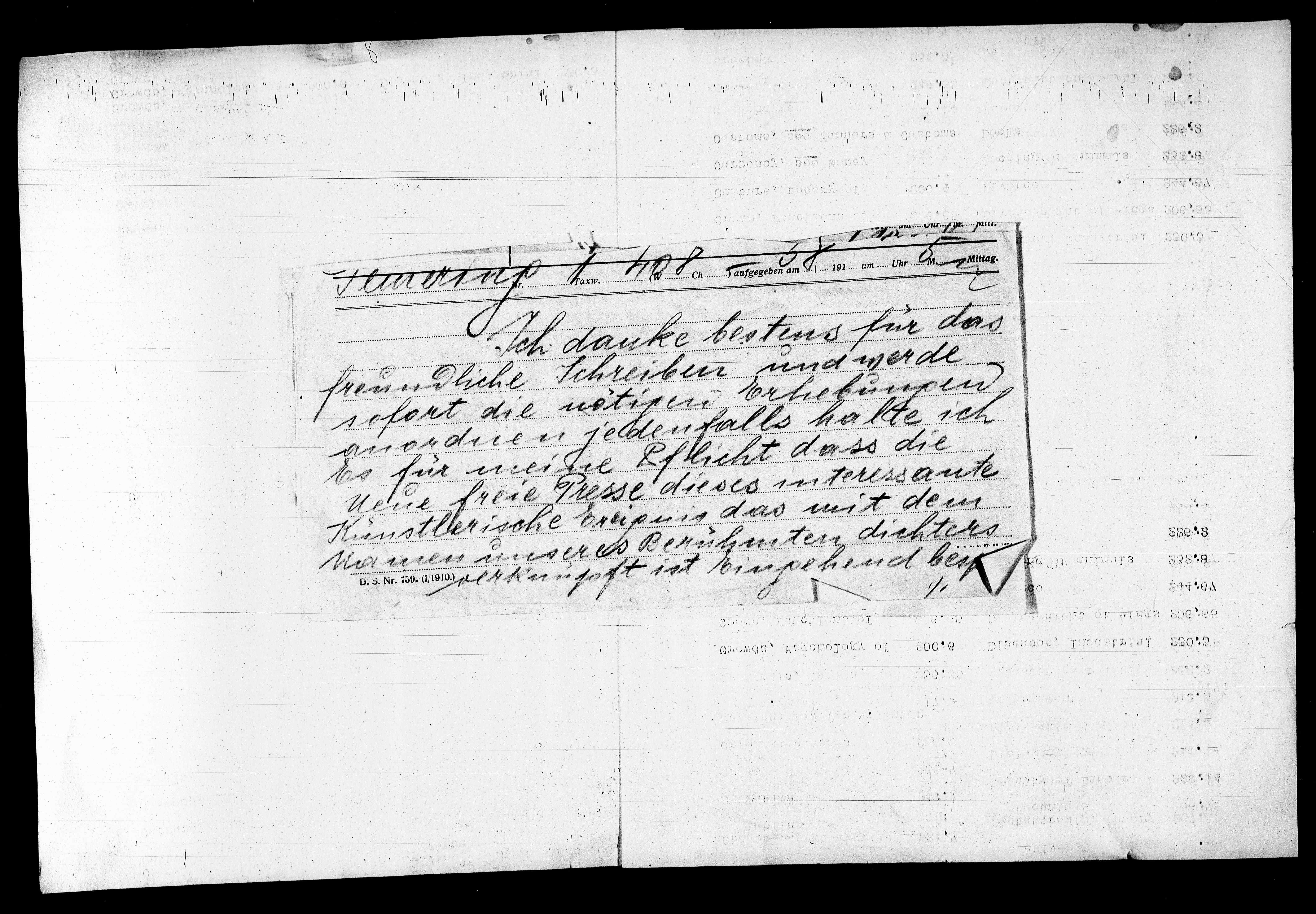 Ausw. 4D8 Ch. Laufgegeben am 31.11.91 um Uhr Ch. Mittag.