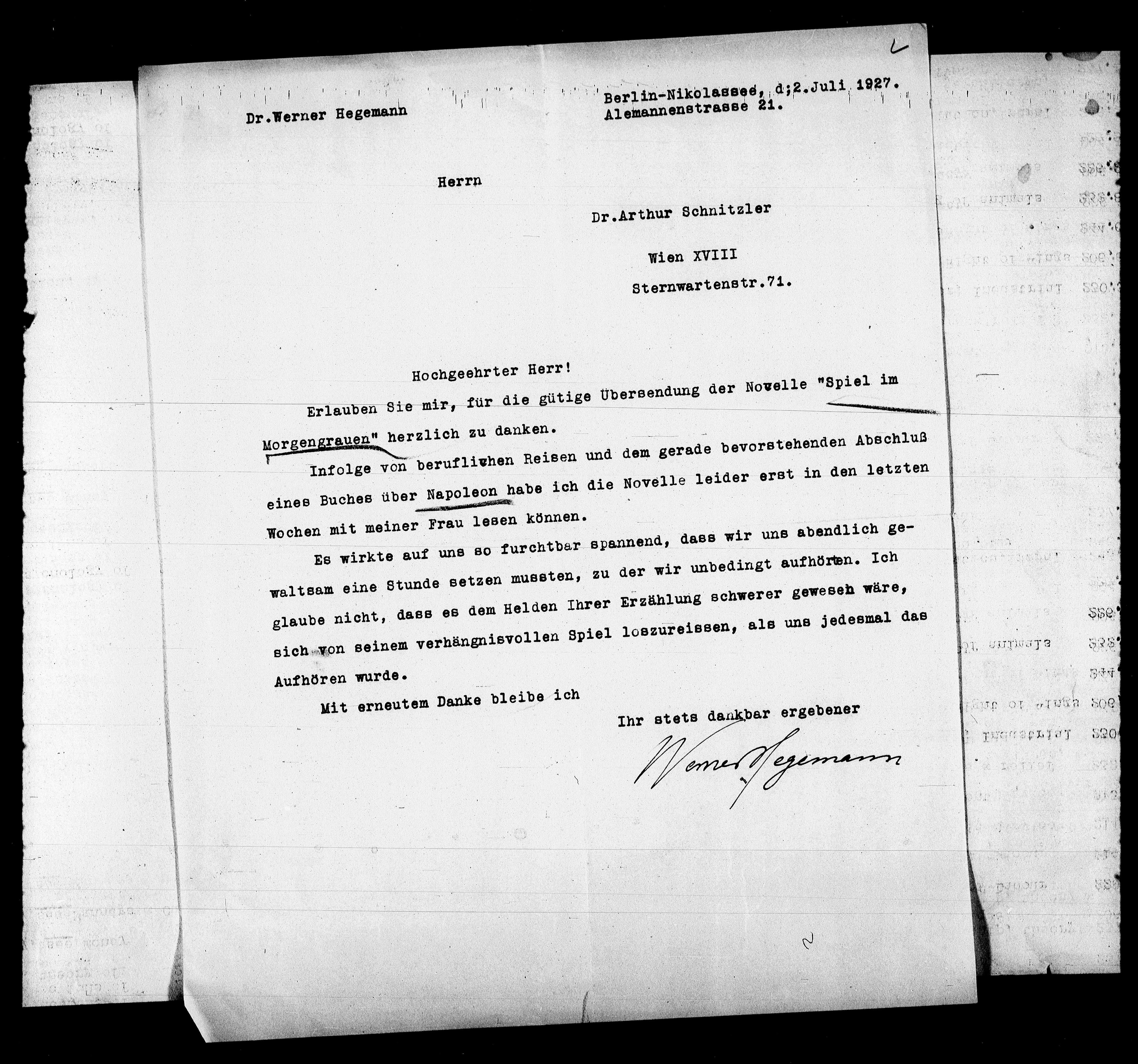 Erlauben Sie mir, für die gütige Übersendung der Novelle "Spiel im