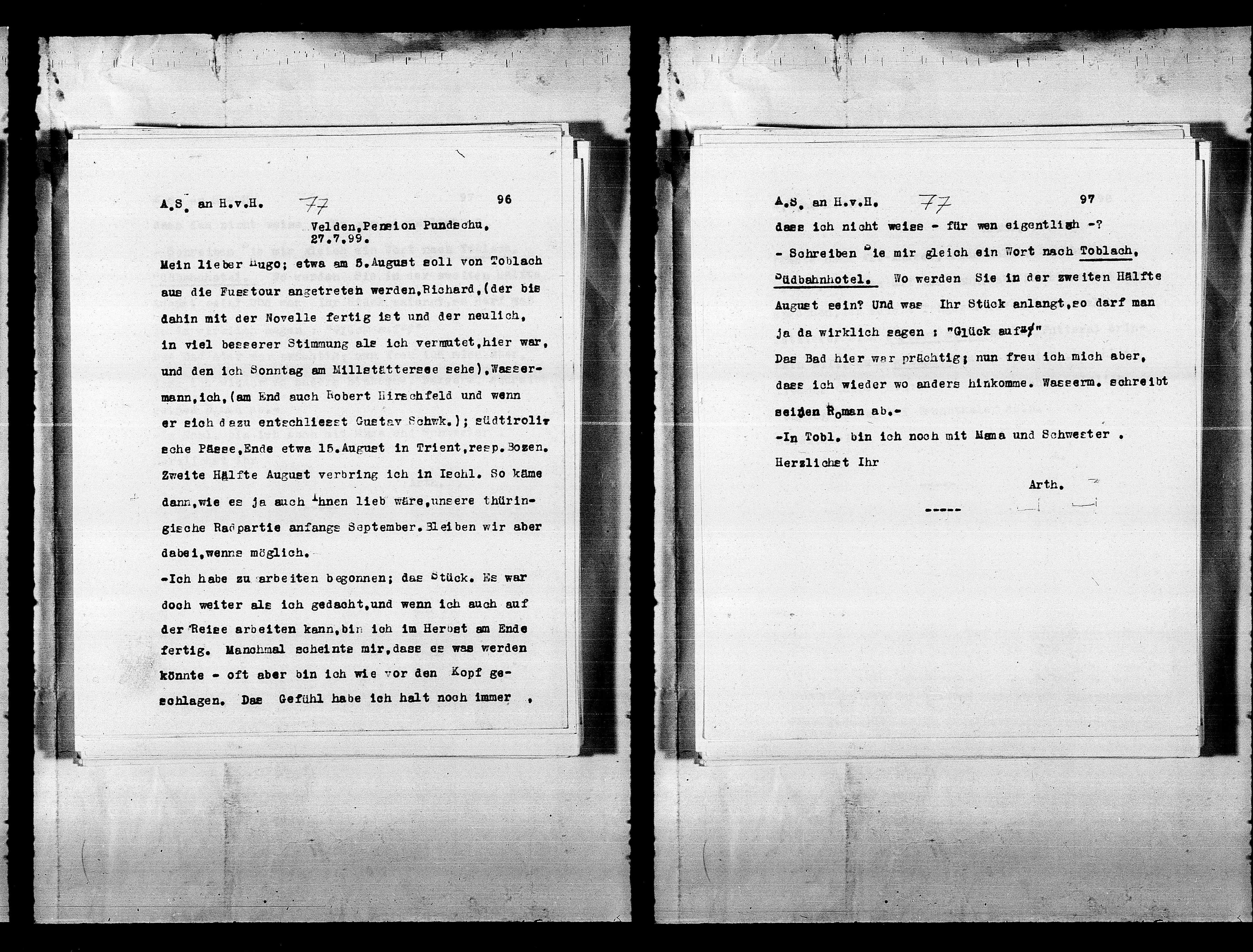 - Schreiben sie mir gleich ein Wort nach Toblach,