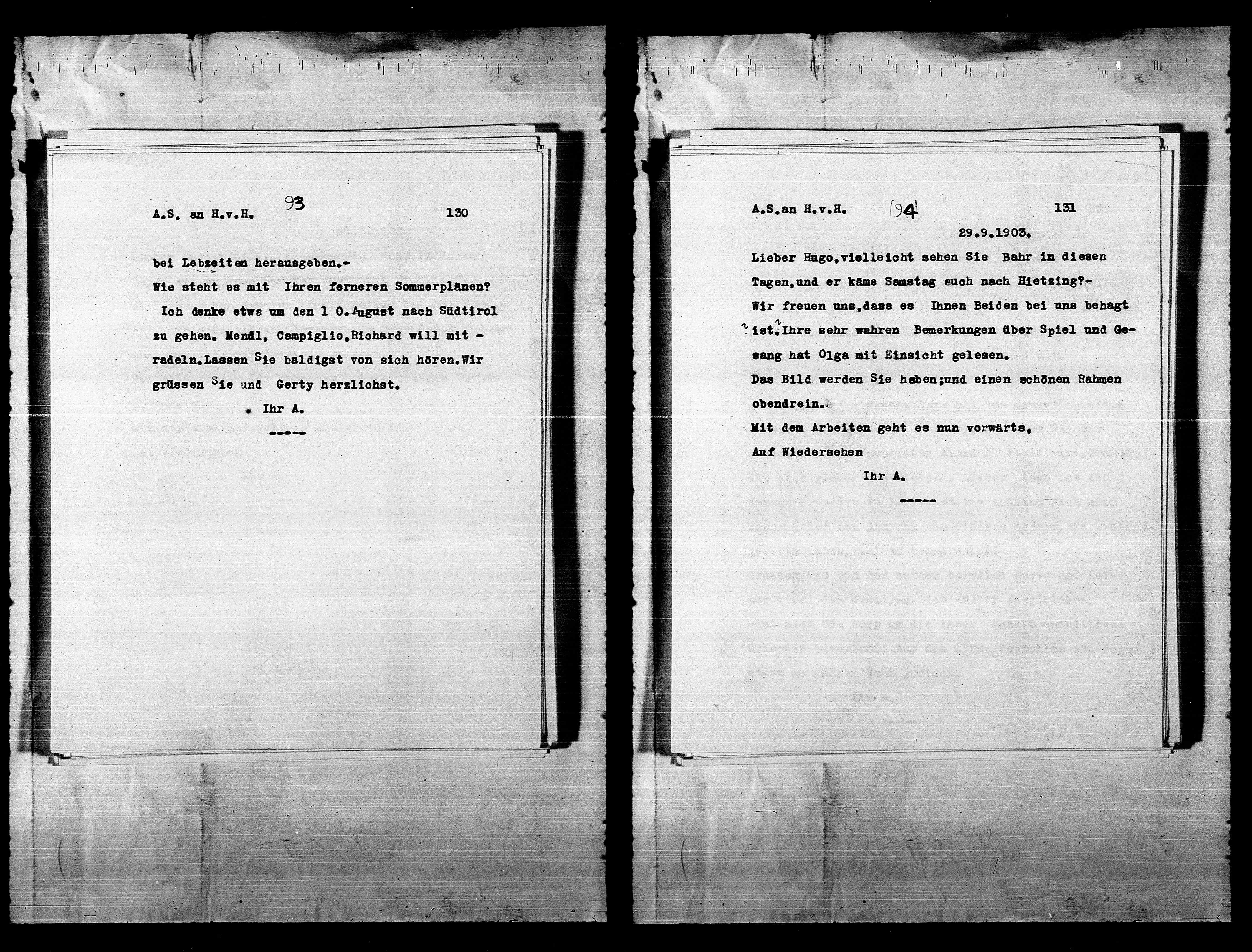 Tagen, und er käme Samstag auch nach Hietzing?-