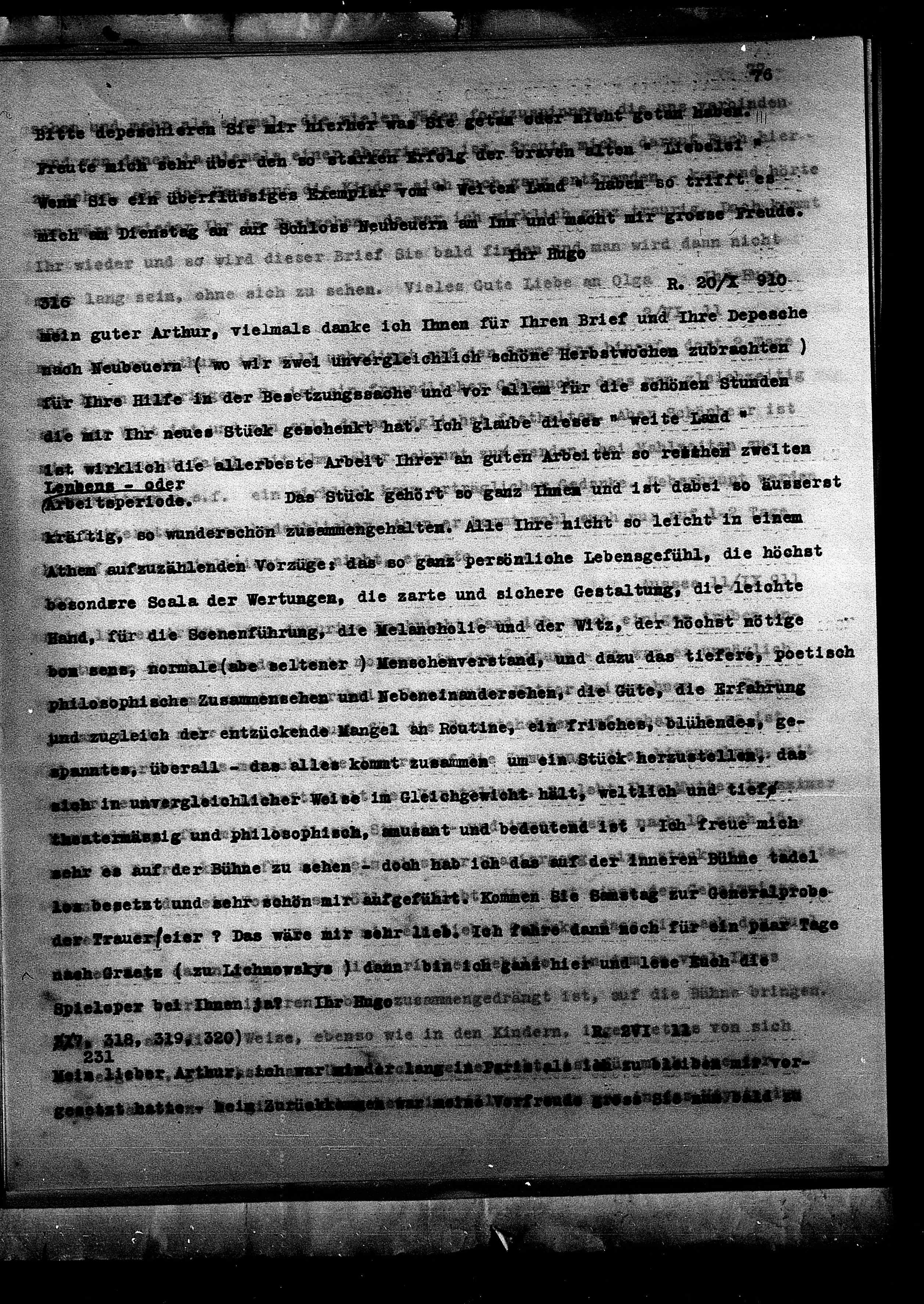 mein guter Arthur, vielmals danke ich Ihnen für Ihren Brief und Ihre Depesche