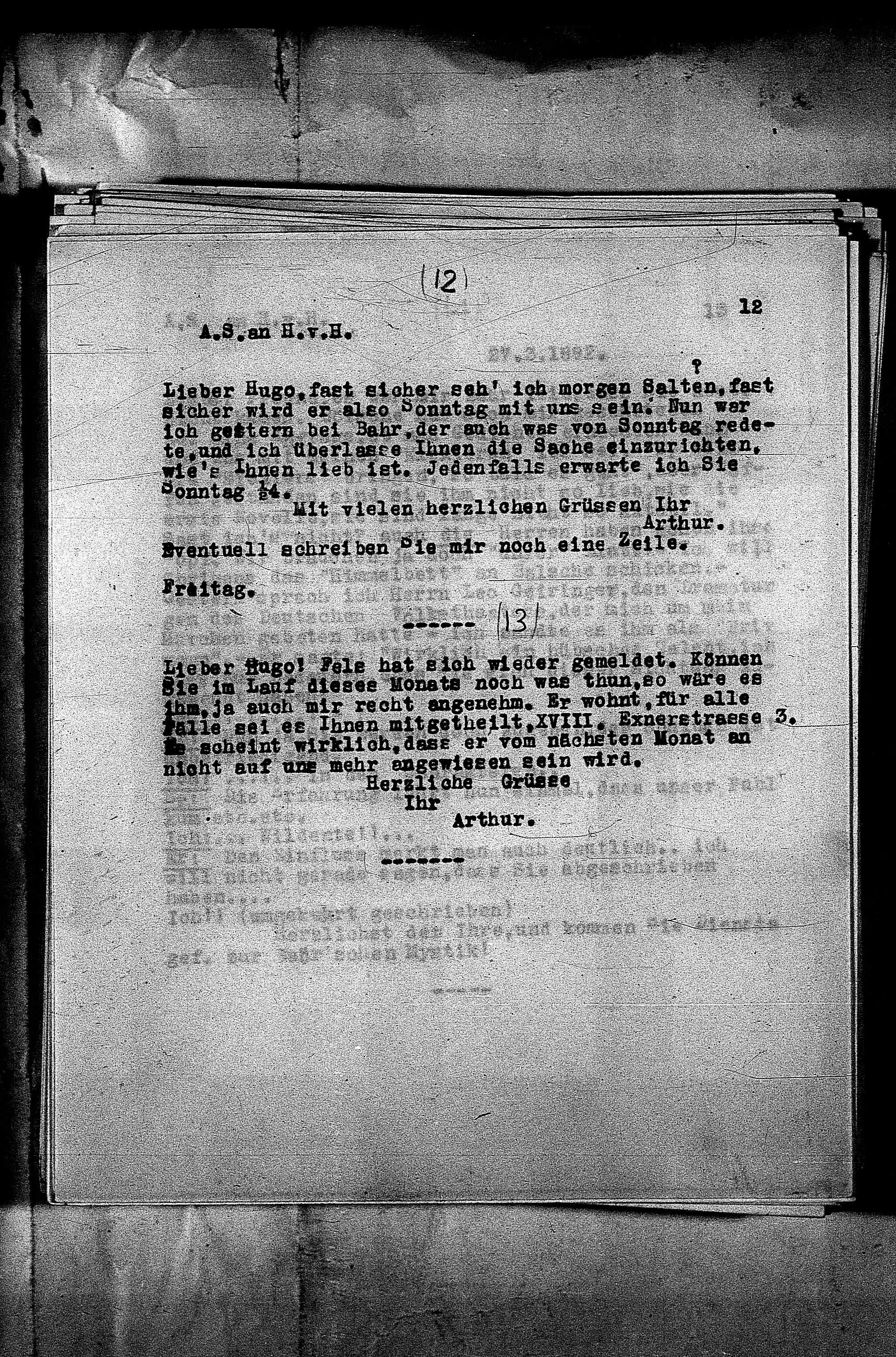alle sei es Ihnen mitgetheilt, XVIII, Exnerstrasse 3.