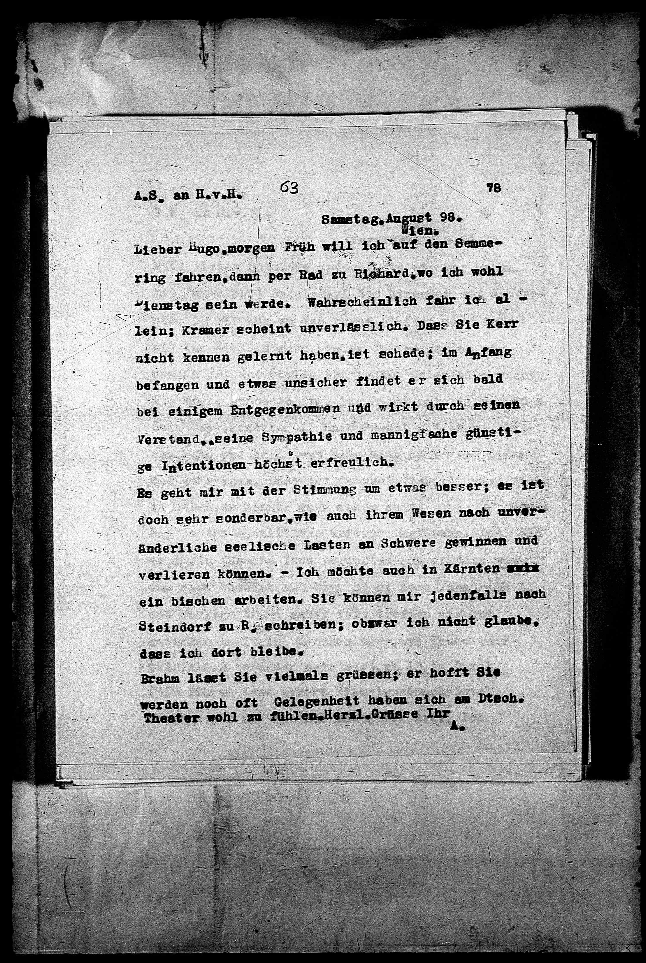 Brahm lässt Sie vielmals grüssen; er hofft Sie