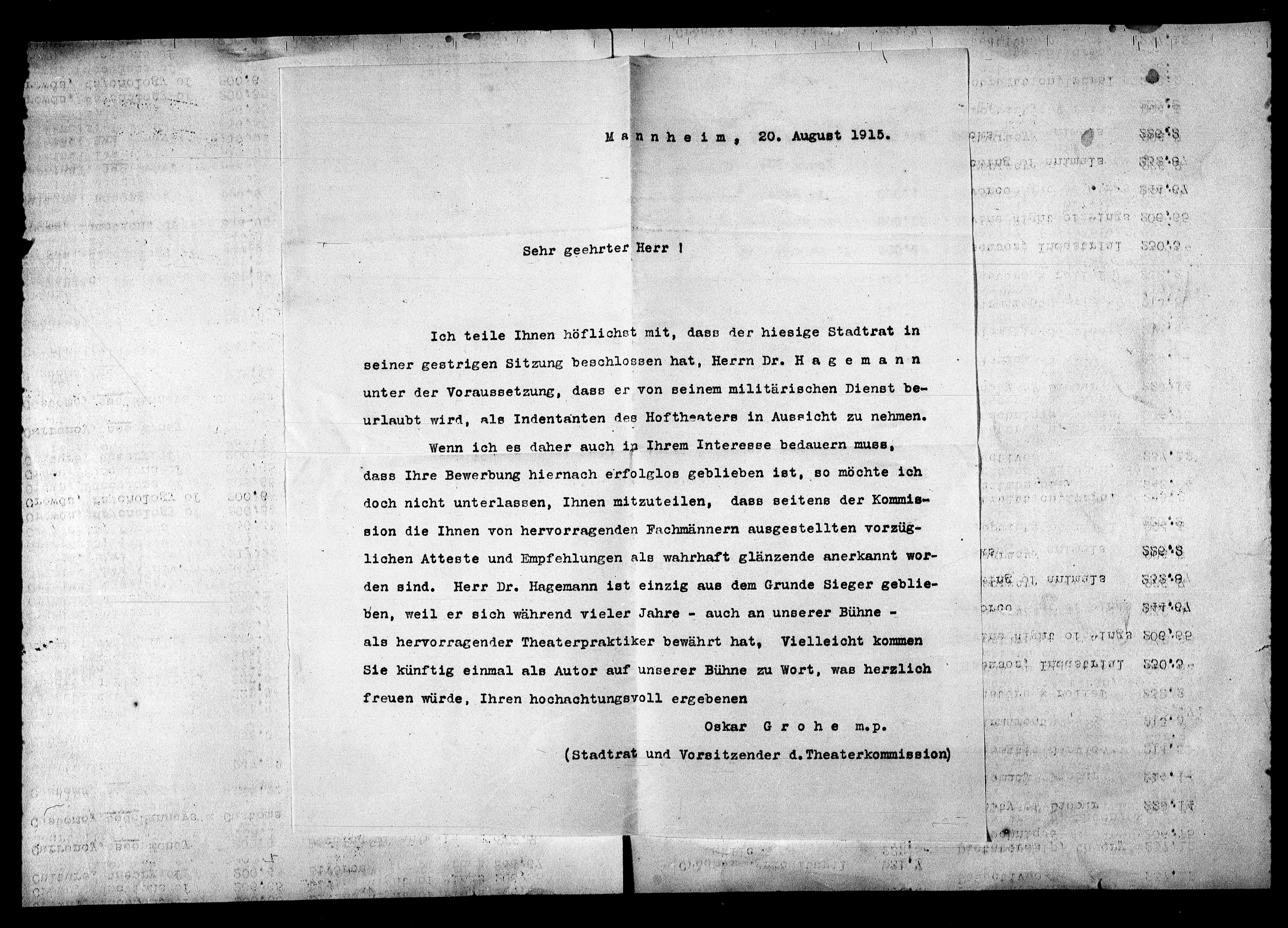 Mannheim, 20. August 1915.