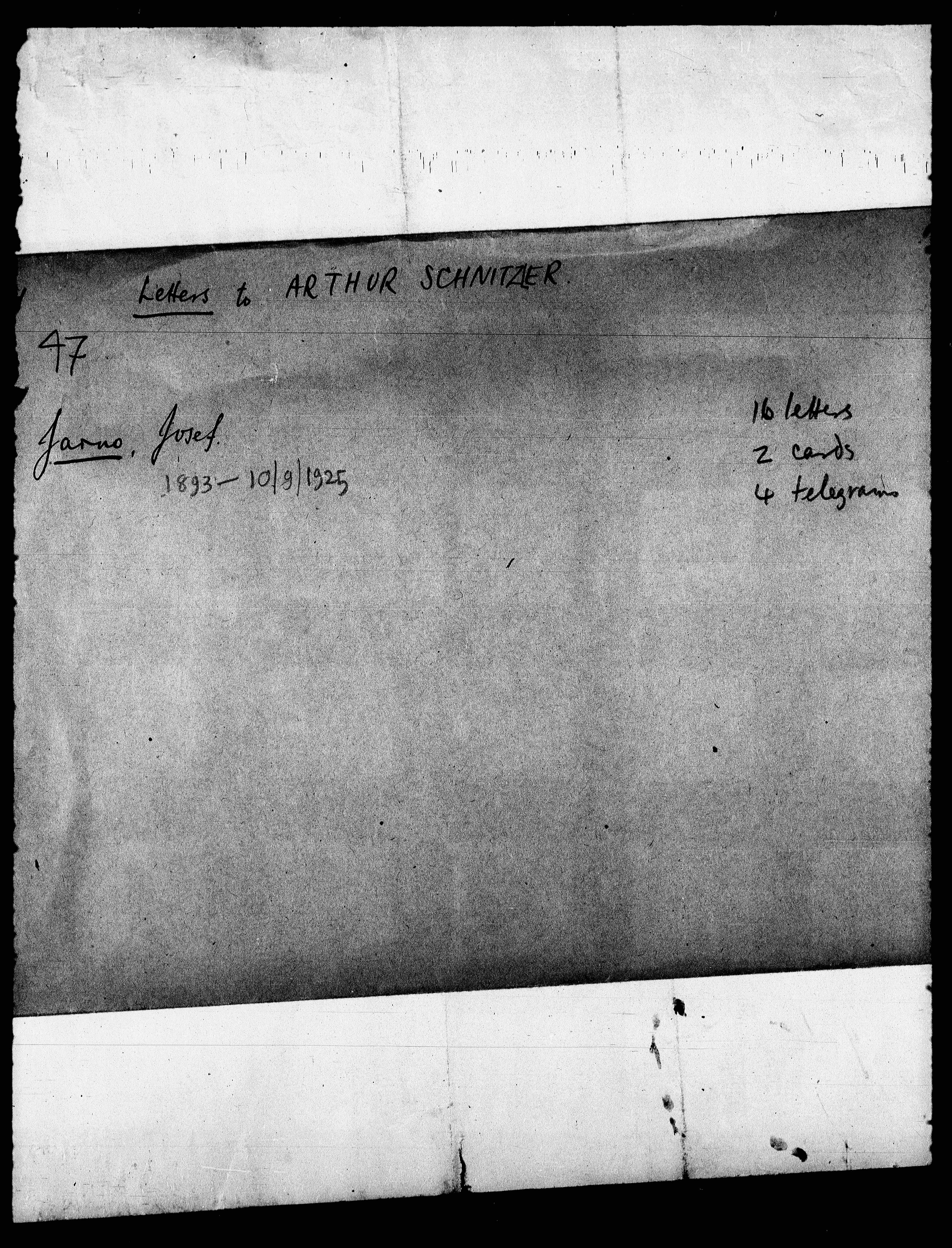 B47: Jarno, Josef, Seite 3, in: Mikroverfilmung des Cambridger Nachlasses. Hg. Peter Andorfer, Martin Anton Müller und Laura Untner, Austrian Centre for Digital Humanities and Cultural Heritage, Wien 2024, https://schnitzler-mikrofilme.acdh.oeaw.ac.at/1416445_0003.html