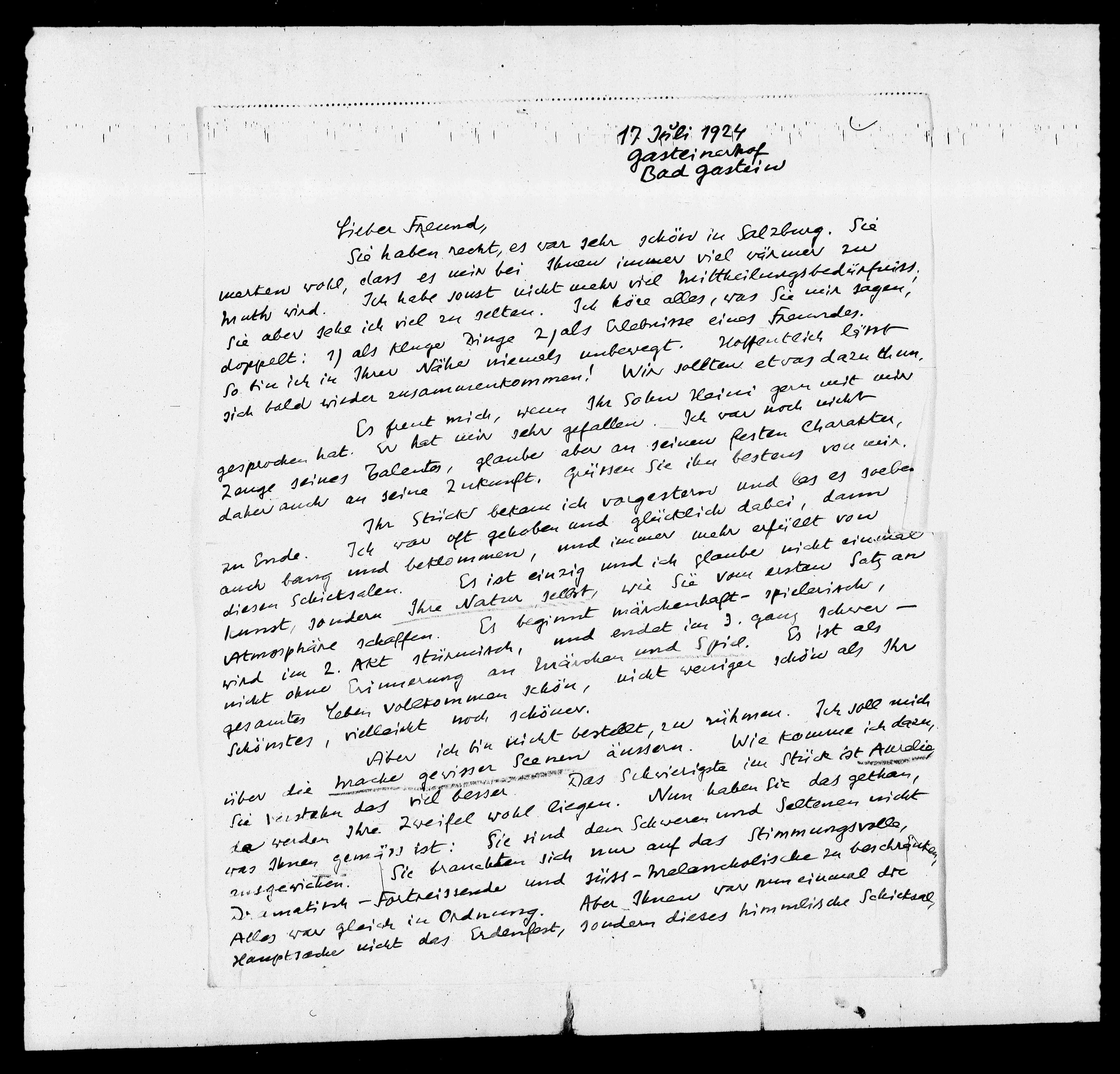 Ihr Stückt bekam ich vorgesterne und las es soeben