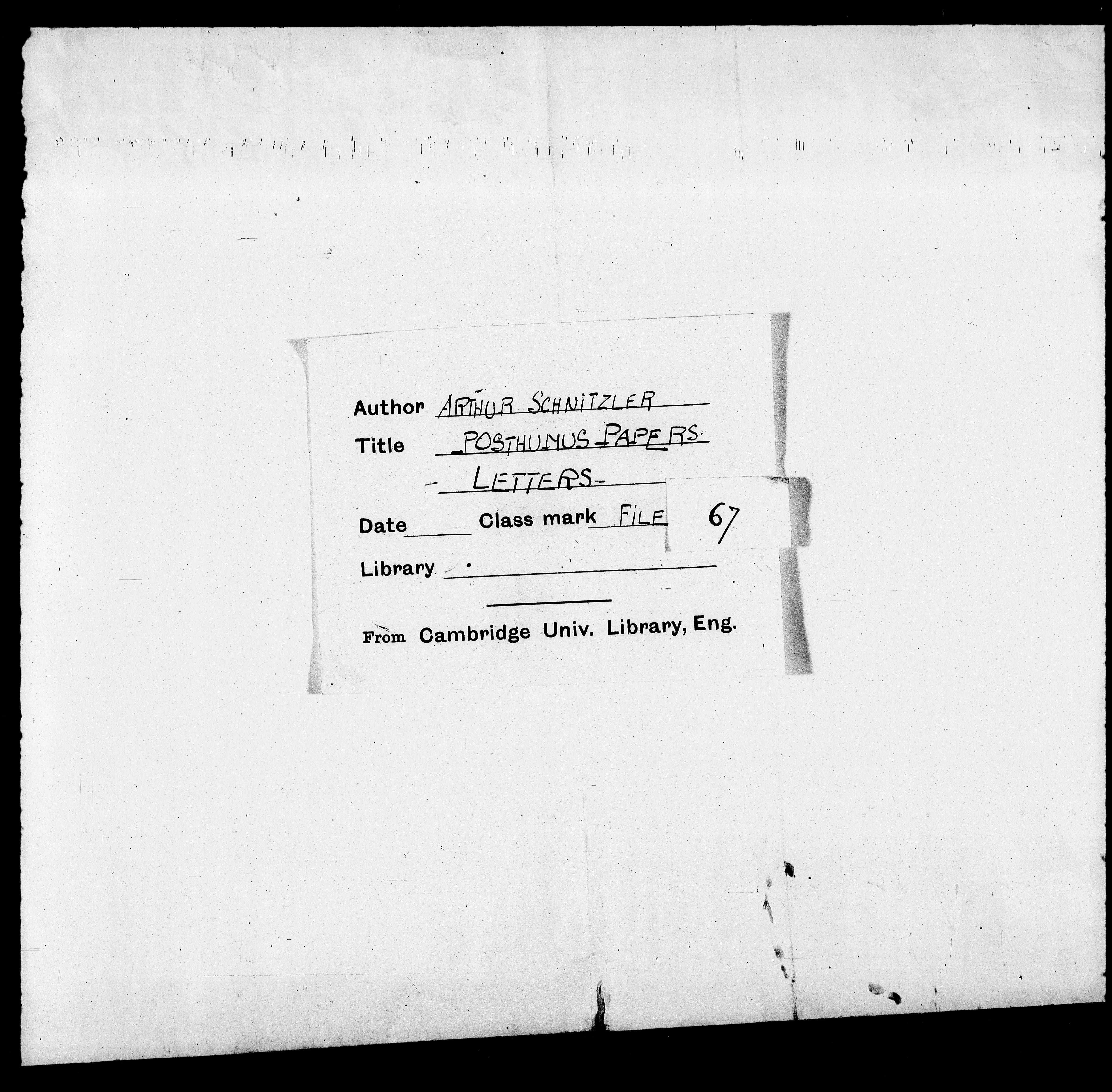 B67: Mann, Thomas, Seite 1, in: Mikroverfilmung des Cambridger Nachlasses. Hg. Peter Andorfer, Martin Anton Müller und Laura Untner, Austrian Centre for Digital Humanities and Cultural Heritage, Wien 2024, https://schnitzler-mikrofilme.acdh.oeaw.ac.at/1416461_0001.html