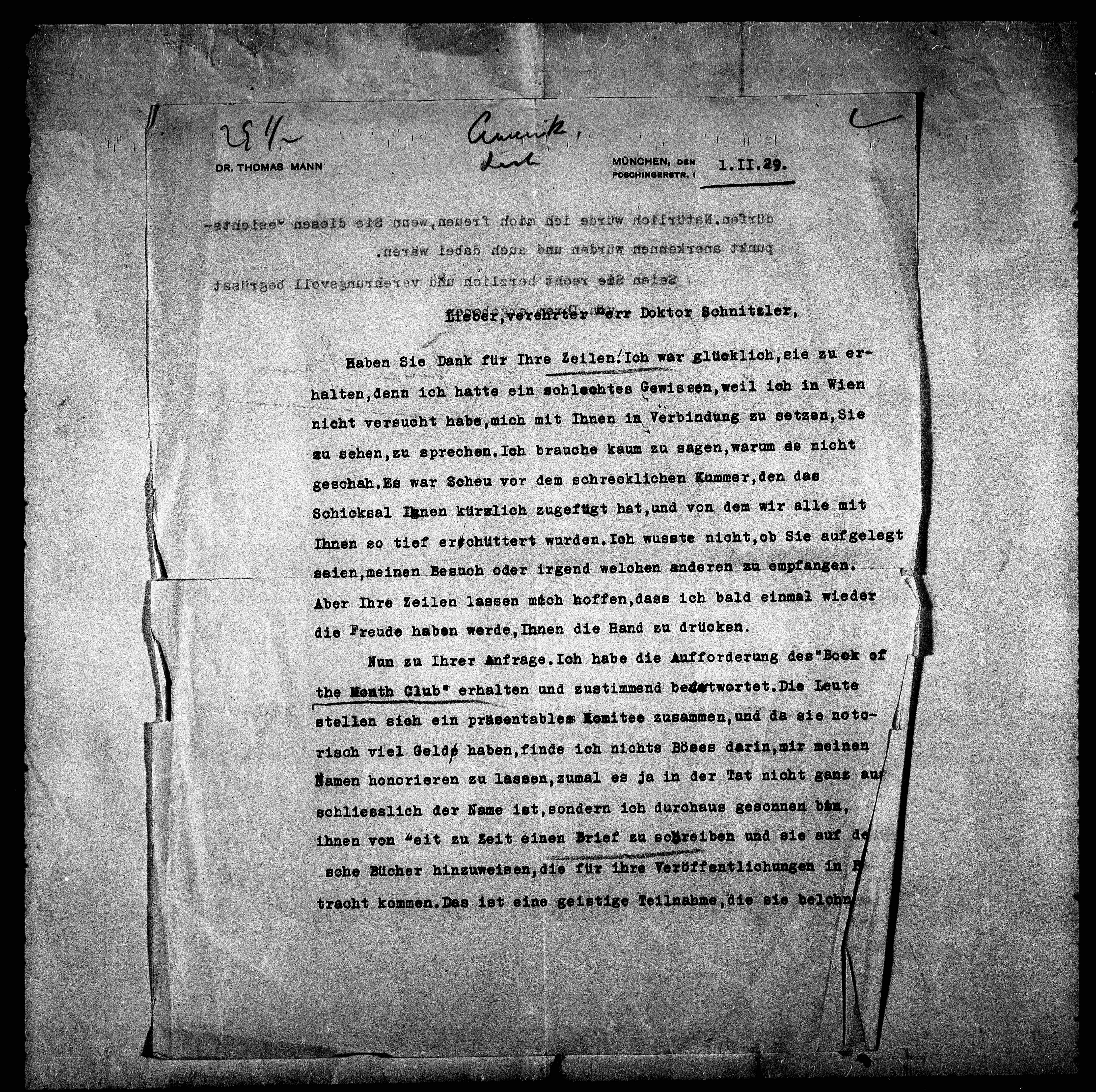 Lieber, verehrter Herr Doktor Schnitzler,