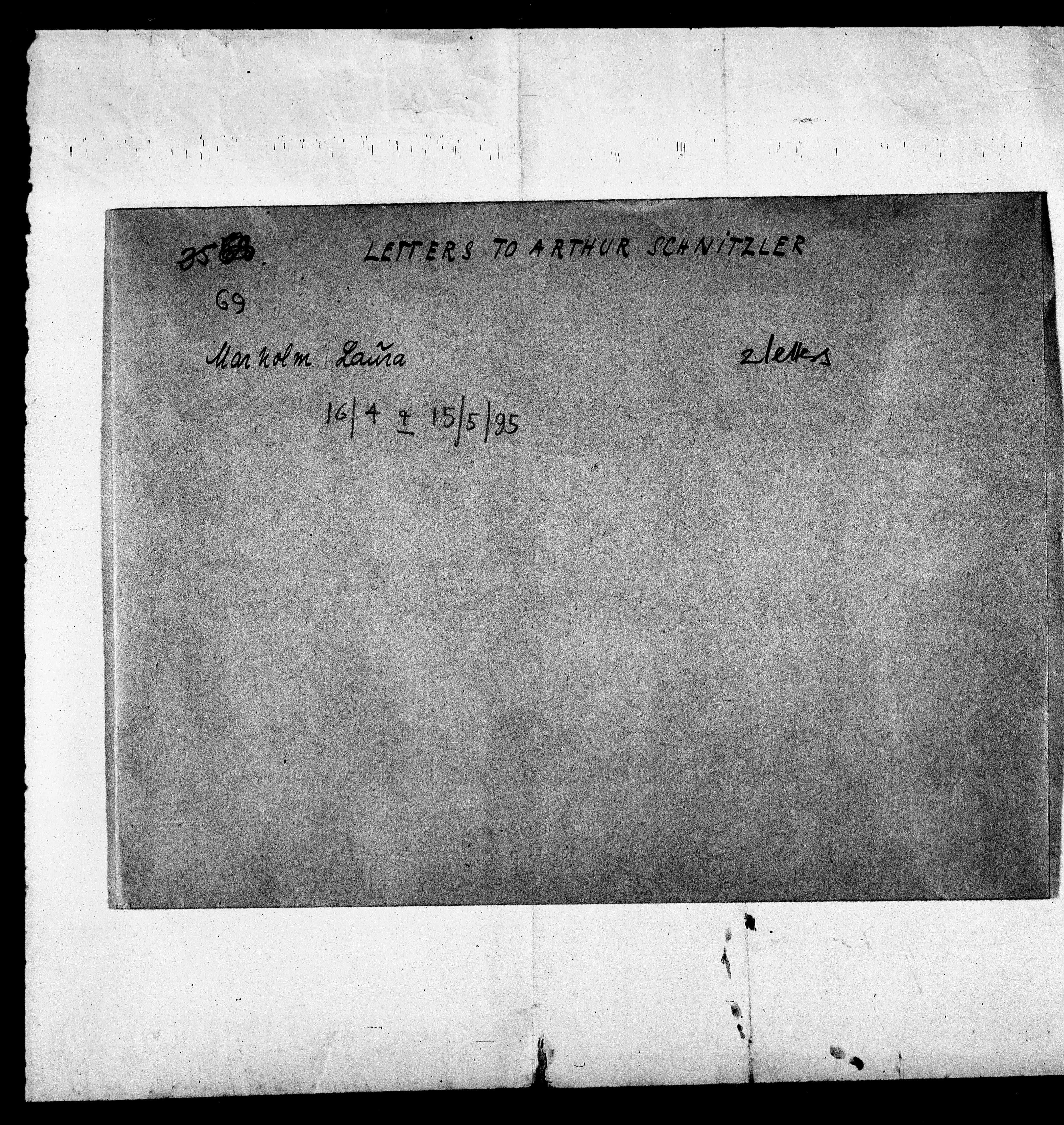 B69: Marholm, Laura, Seite 2, in: Mikroverfilmung des Cambridger Nachlasses. Hg. Peter Andorfer, Martin Anton Müller und Laura Untner, Austrian Centre for Digital Humanities and Cultural Heritage, Wien 2024, https://schnitzler-mikrofilme.acdh.oeaw.ac.at/1416463_0002.html