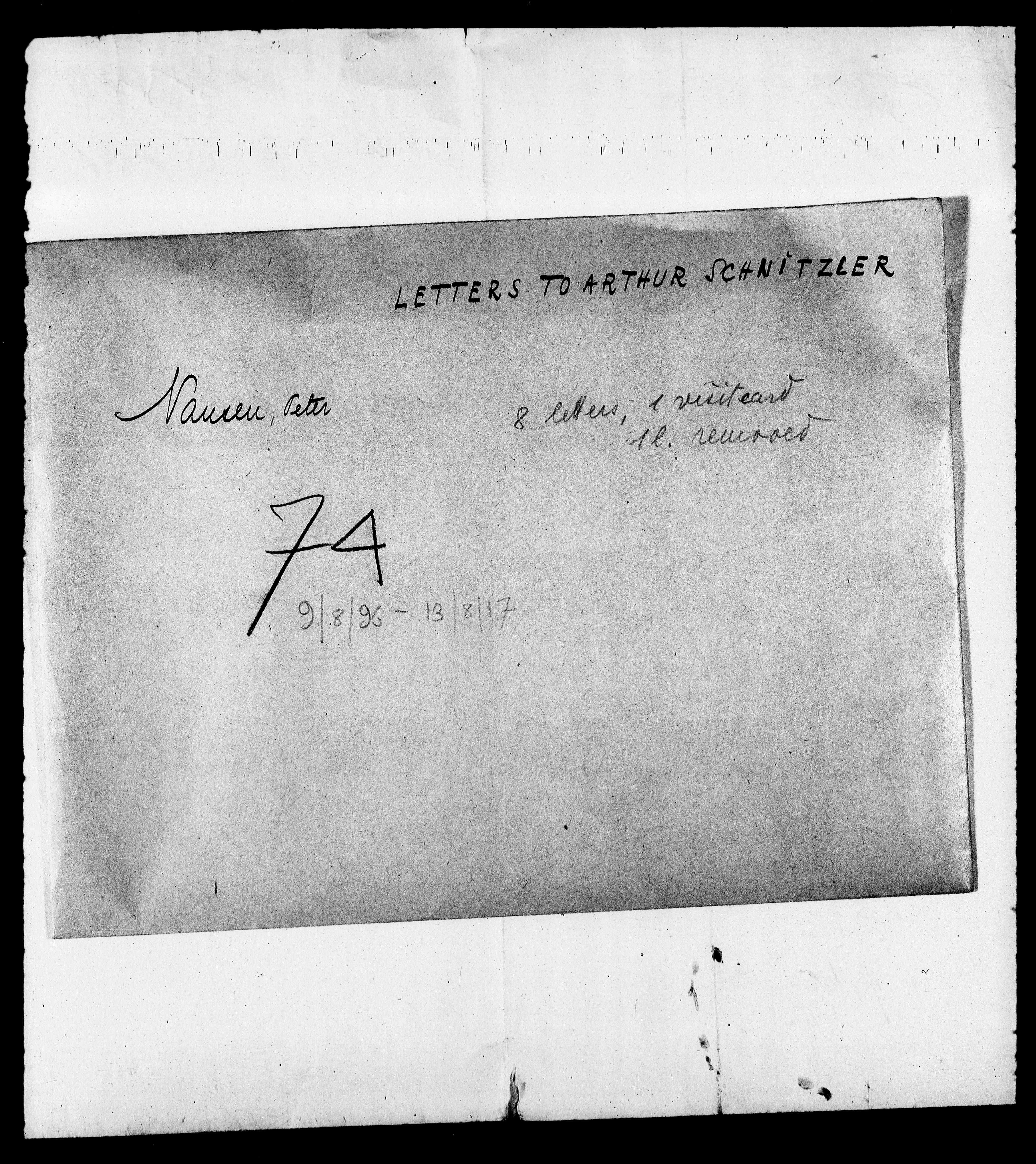 B74: Nansen, Peter, Seite 3, in: Mikroverfilmung des Cambridger Nachlasses. Hg. Peter Andorfer, Martin Anton Müller und Laura Untner, Austrian Centre for Digital Humanities and Cultural Heritage, Wien 2024, https://schnitzler-mikrofilme.acdh.oeaw.ac.at/1416466_0003.html