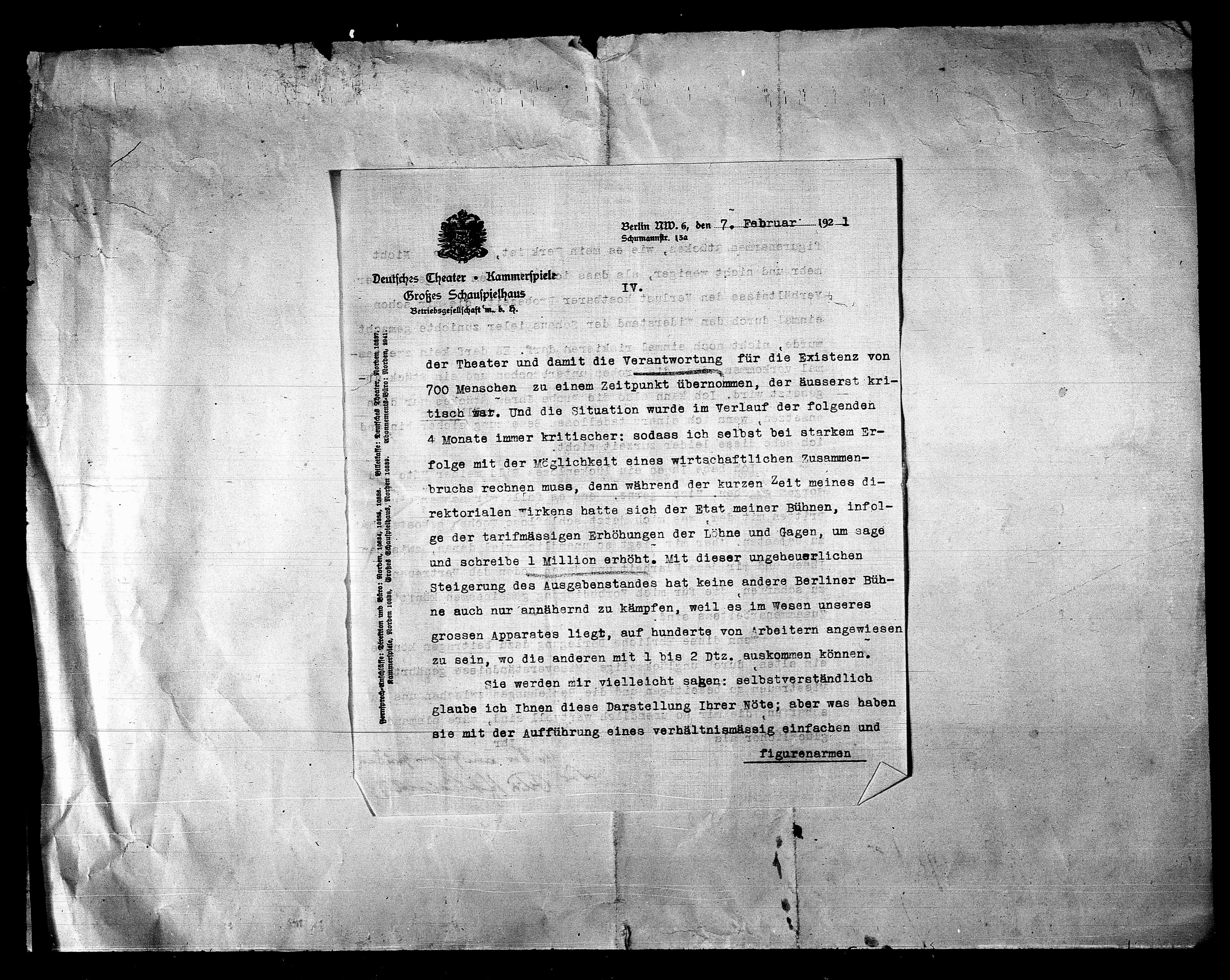 Berlin A.W. 6, den 7. Februar 1921