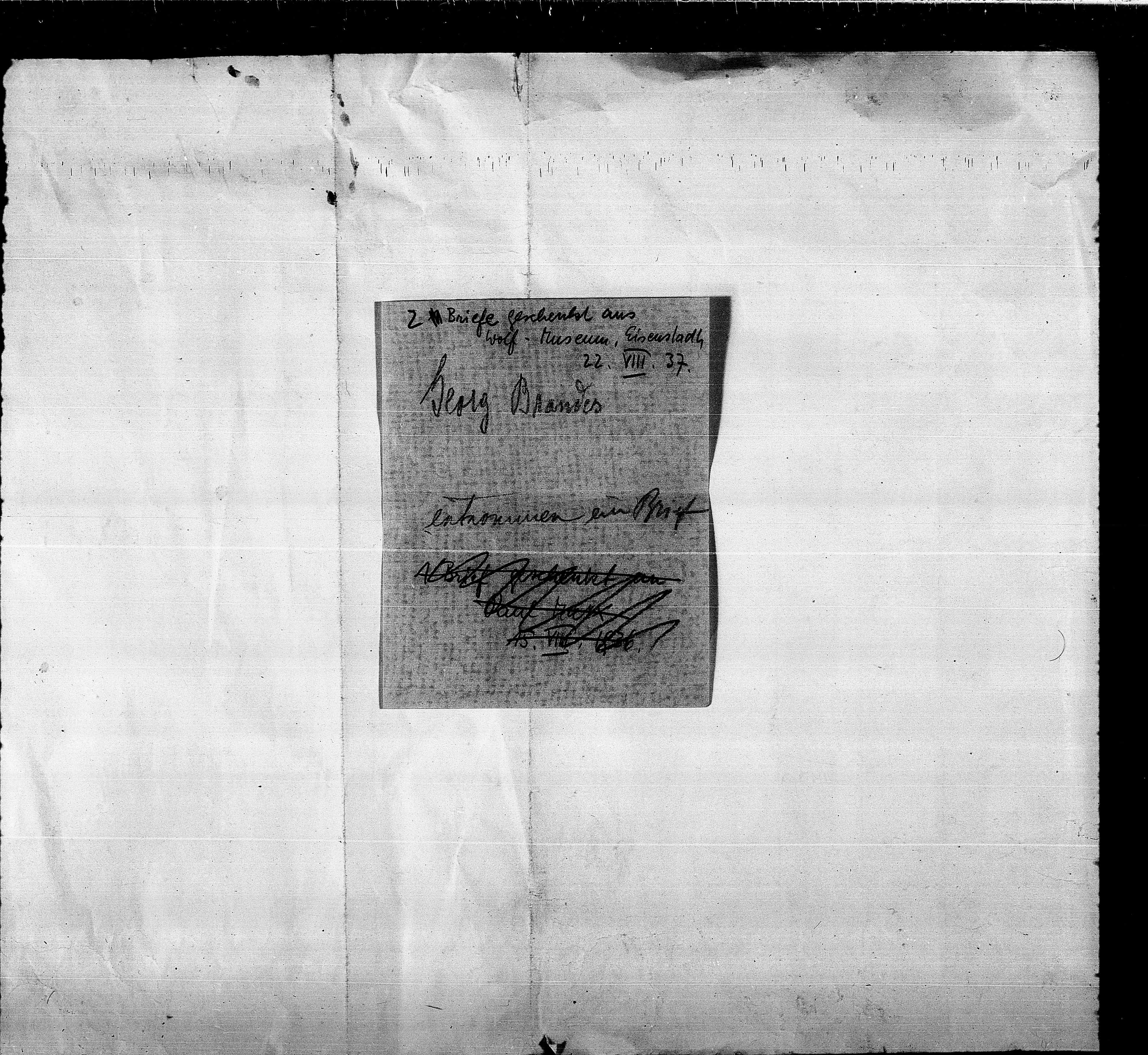 B17: Brandes, Georg 1 Briefe, Seite 50, in: Mikroverfilmung des Cambridger Nachlasses. Hg. Peter Andorfer, Martin Anton Müller und Laura Untner, Austrian Centre for Digital Humanities and Cultural Heritage, Wien 2024, https://schnitzler-mikrofilme.acdh.oeaw.ac.at/1416704_0050.html