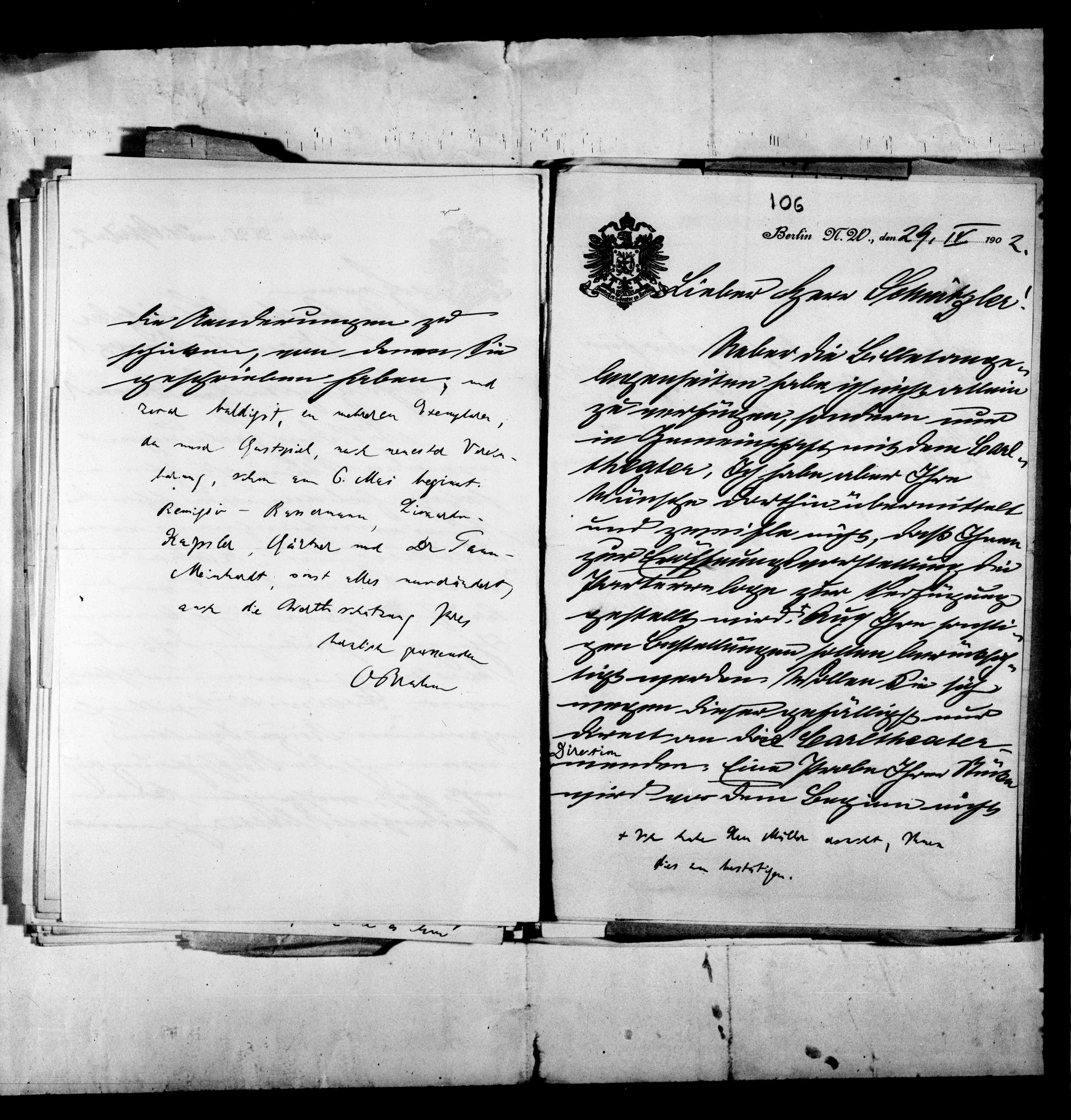 Berlin N. 20., den 29, IV, 190 Z.