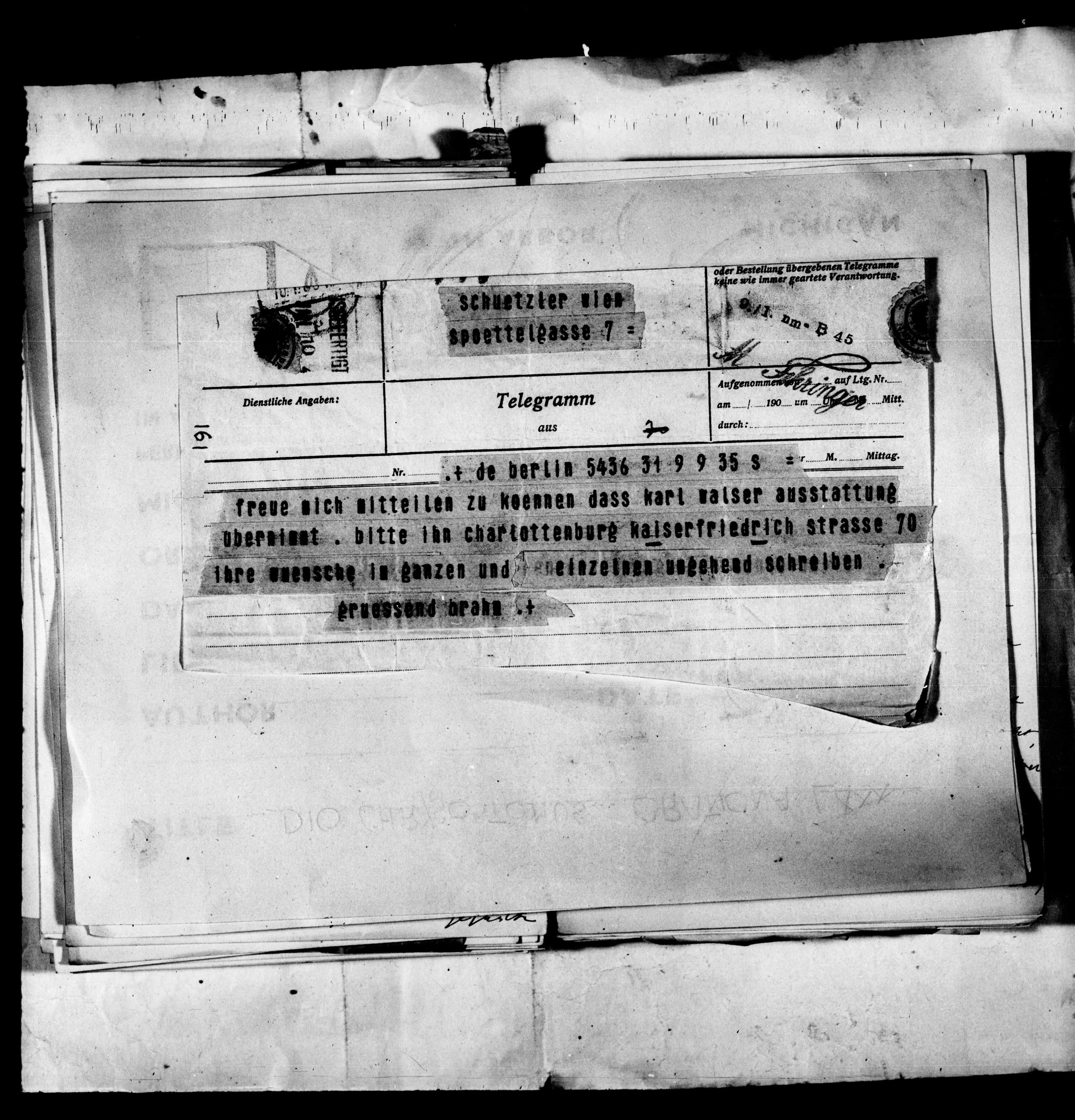 oder Bestellung übergebenen Telegramme