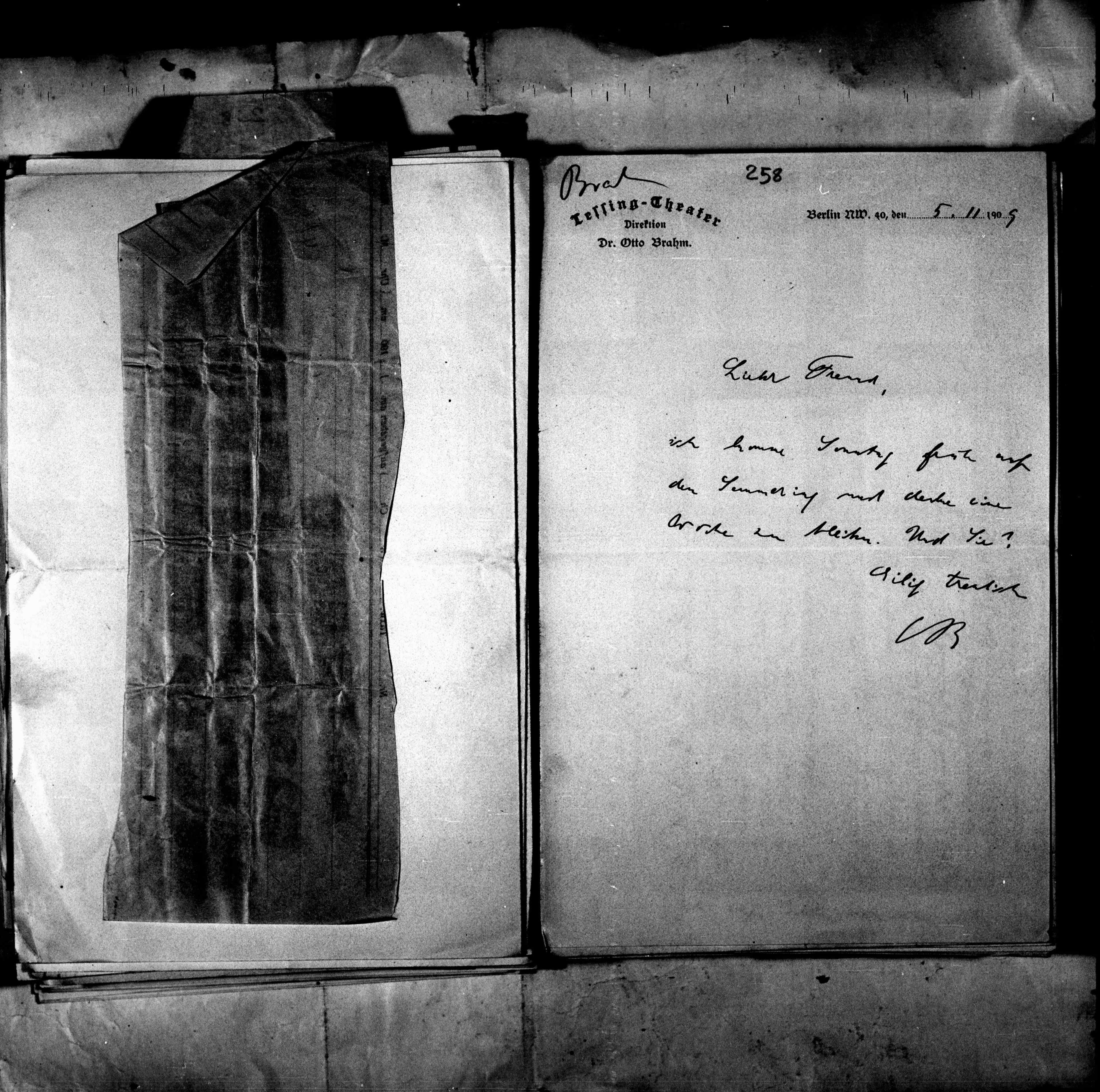 B16: Brahm, Otto 1a Originale an Arthur Schnitzler, Seite 290, in: Mikroverfilmung des Cambridger Nachlasses. Hg. Peter Andorfer, Martin Anton Müller und Laura Untner, Austrian Centre for Digital Humanities and Cultural Heritage, Wien 2024, https://schnitzler-mikrofilme.acdh.oeaw.ac.at/1416705_0290.html