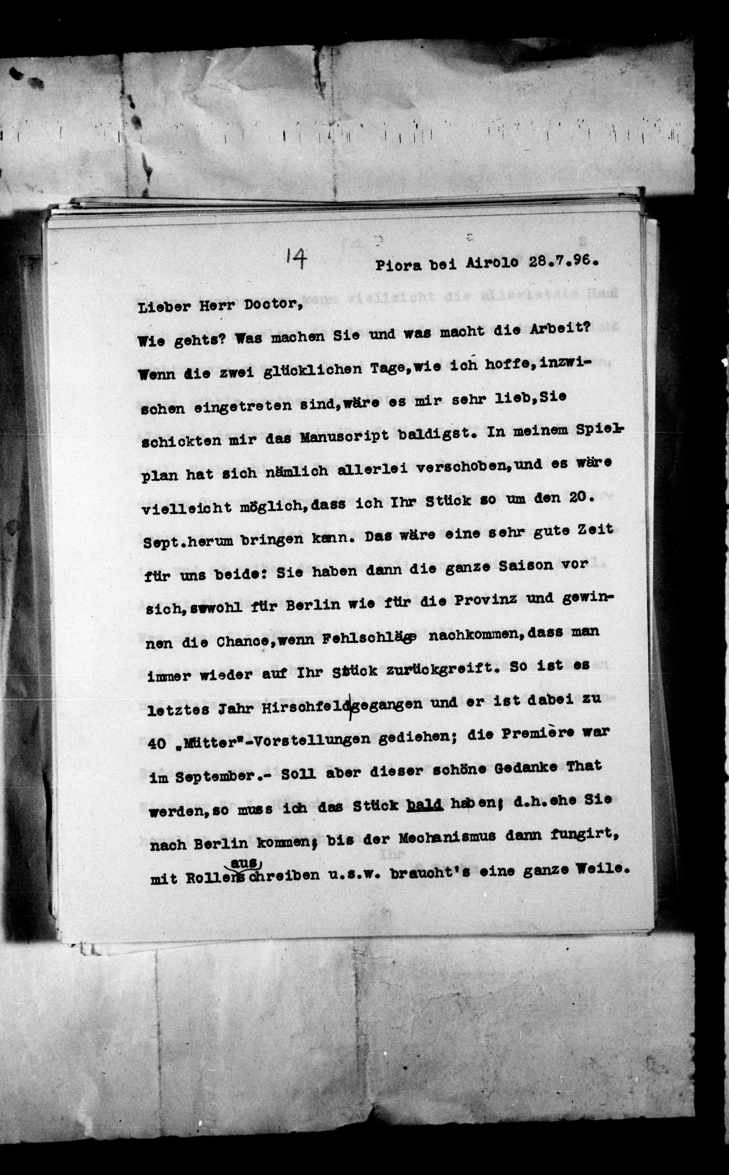 schickten mir das Manuscript baldigst. In meinem Spiel-
