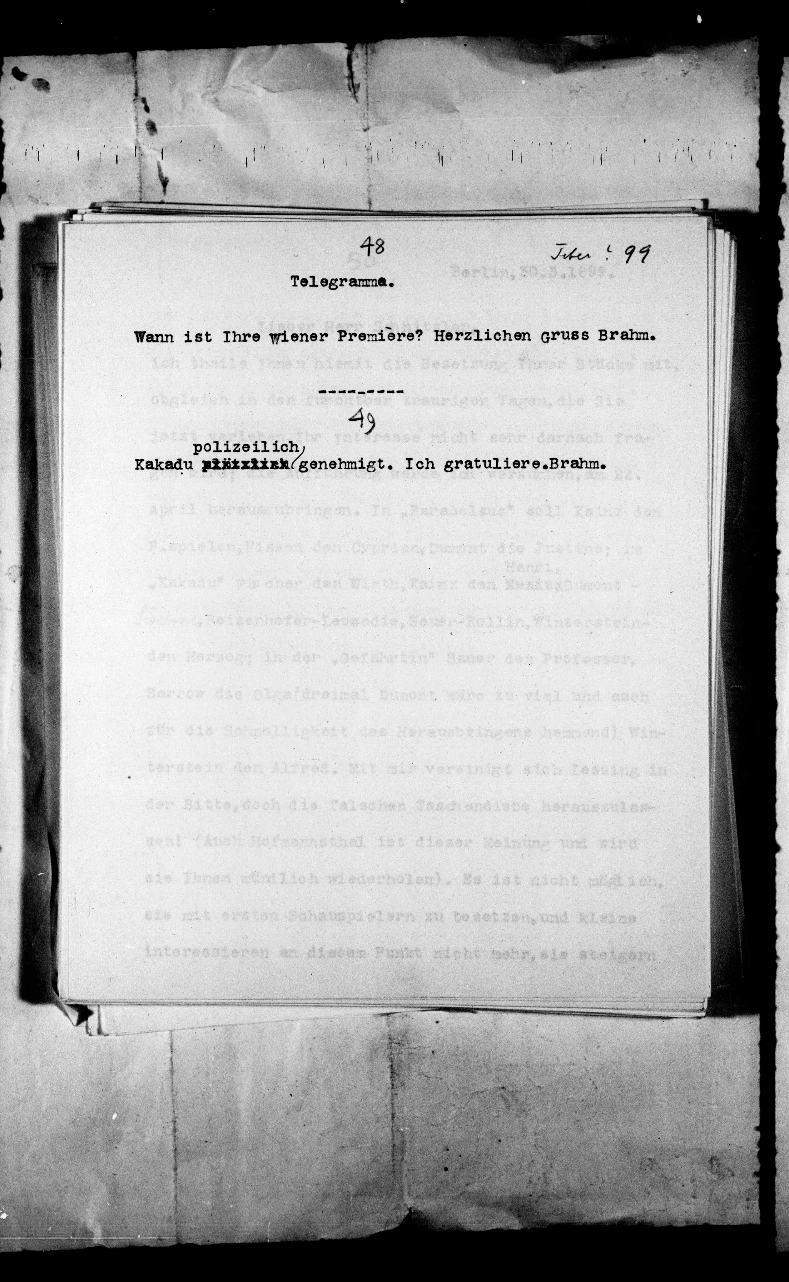 B16: Brahm, Otto 1b Arthur Schnitzler an OB, Abschrift, Seite 87, in: Mikroverfilmung des Cambridger Nachlasses. Hg. Peter Andorfer, Martin Anton Müller und Laura Untner, Austrian Centre for Digital Humanities and Cultural Heritage, Wien 2024, https://schnitzler-mikrofilme.acdh.oeaw.ac.at/1416706_0087.html