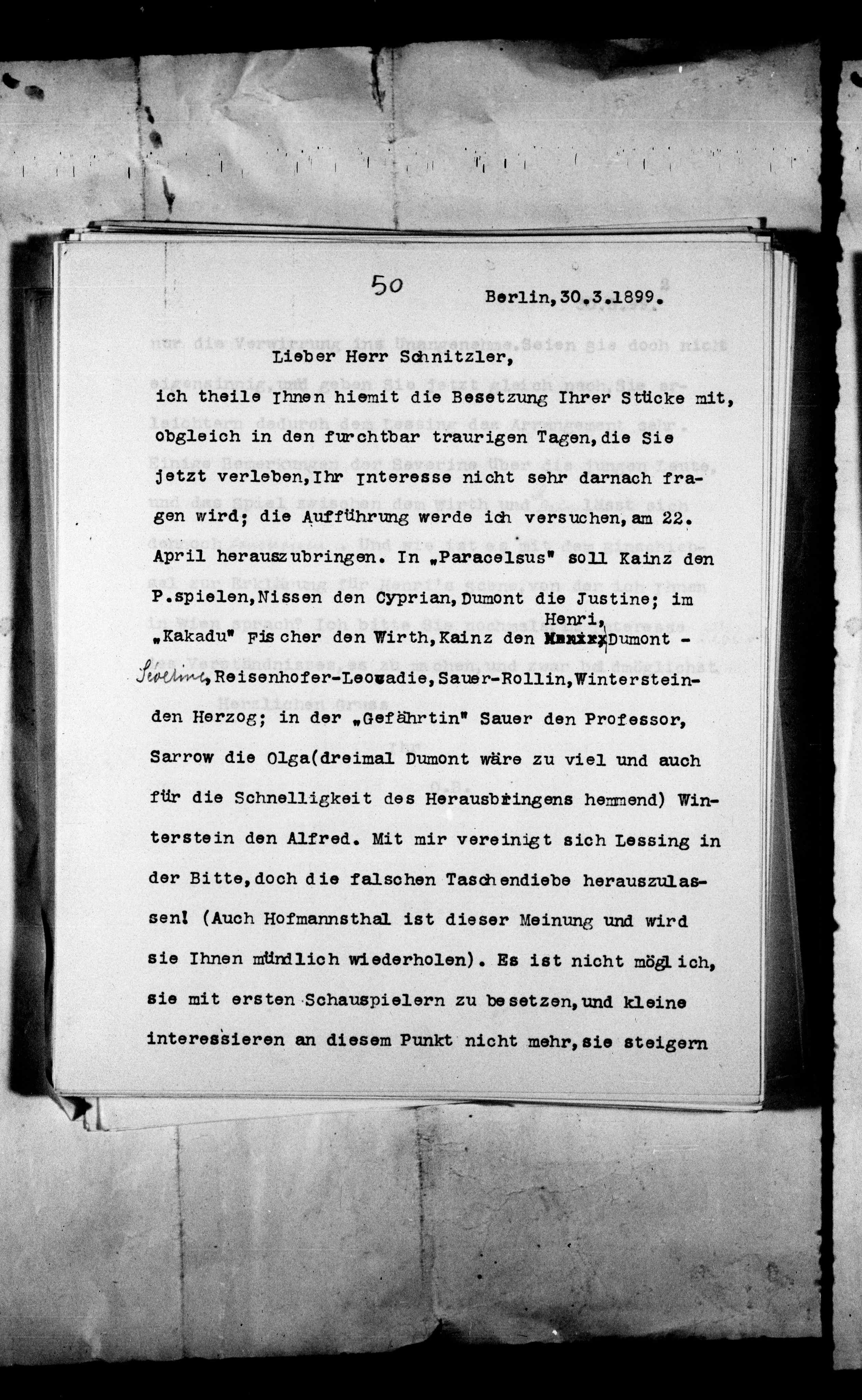 ich theile Ihnen hiemit die Besetzung Ihrer Stücke mit,