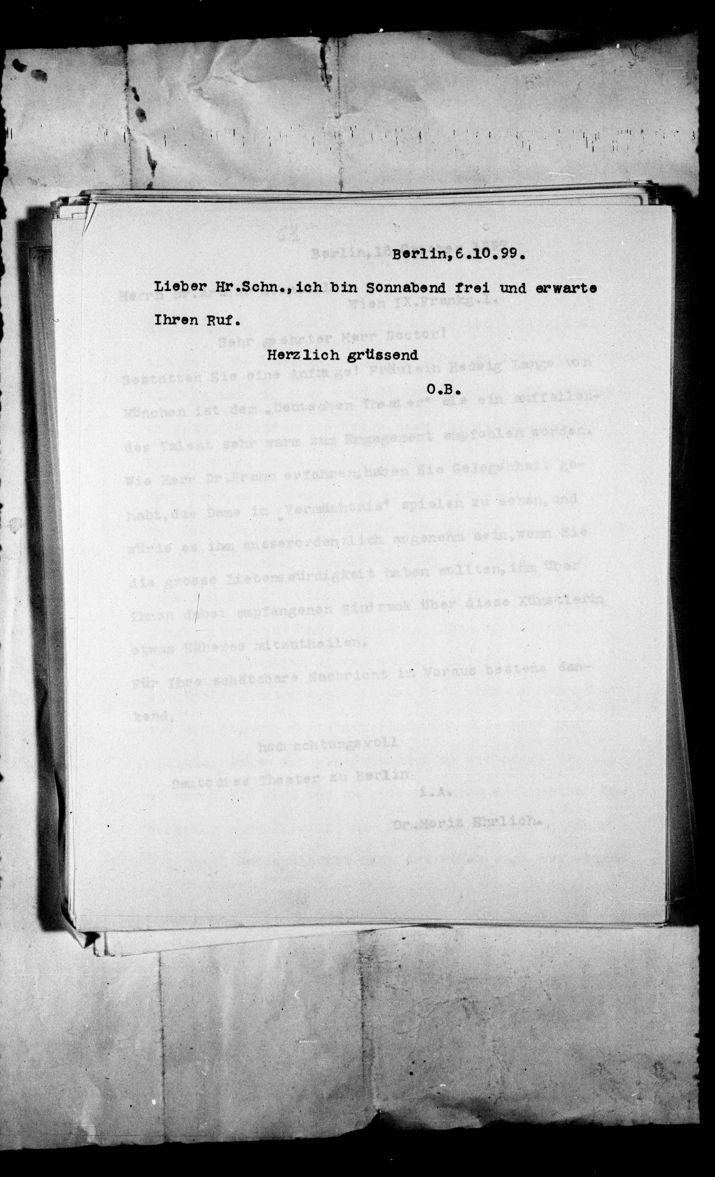 B16: Brahm, Otto 1b Arthur Schnitzler an OB, Abschrift, Seite 105, in: Mikroverfilmung des Cambridger Nachlasses. Hg. Peter Andorfer, Martin Anton Müller und Laura Untner, Austrian Centre for Digital Humanities and Cultural Heritage, Wien 2024, https://schnitzler-mikrofilme.acdh.oeaw.ac.at/1416706_0105.html