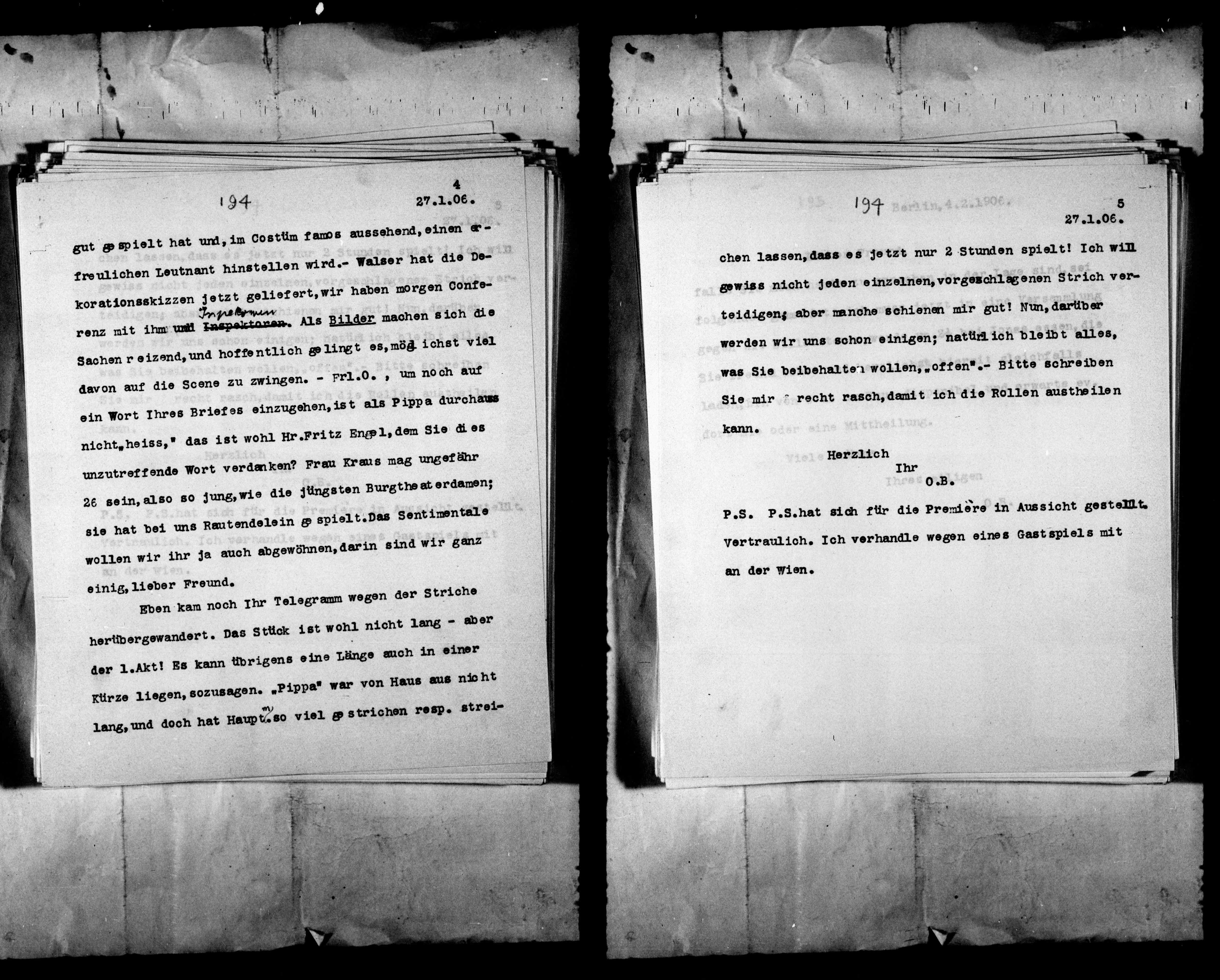 Vertraulich. Ich ver handle wegen eines Gastspiels mit