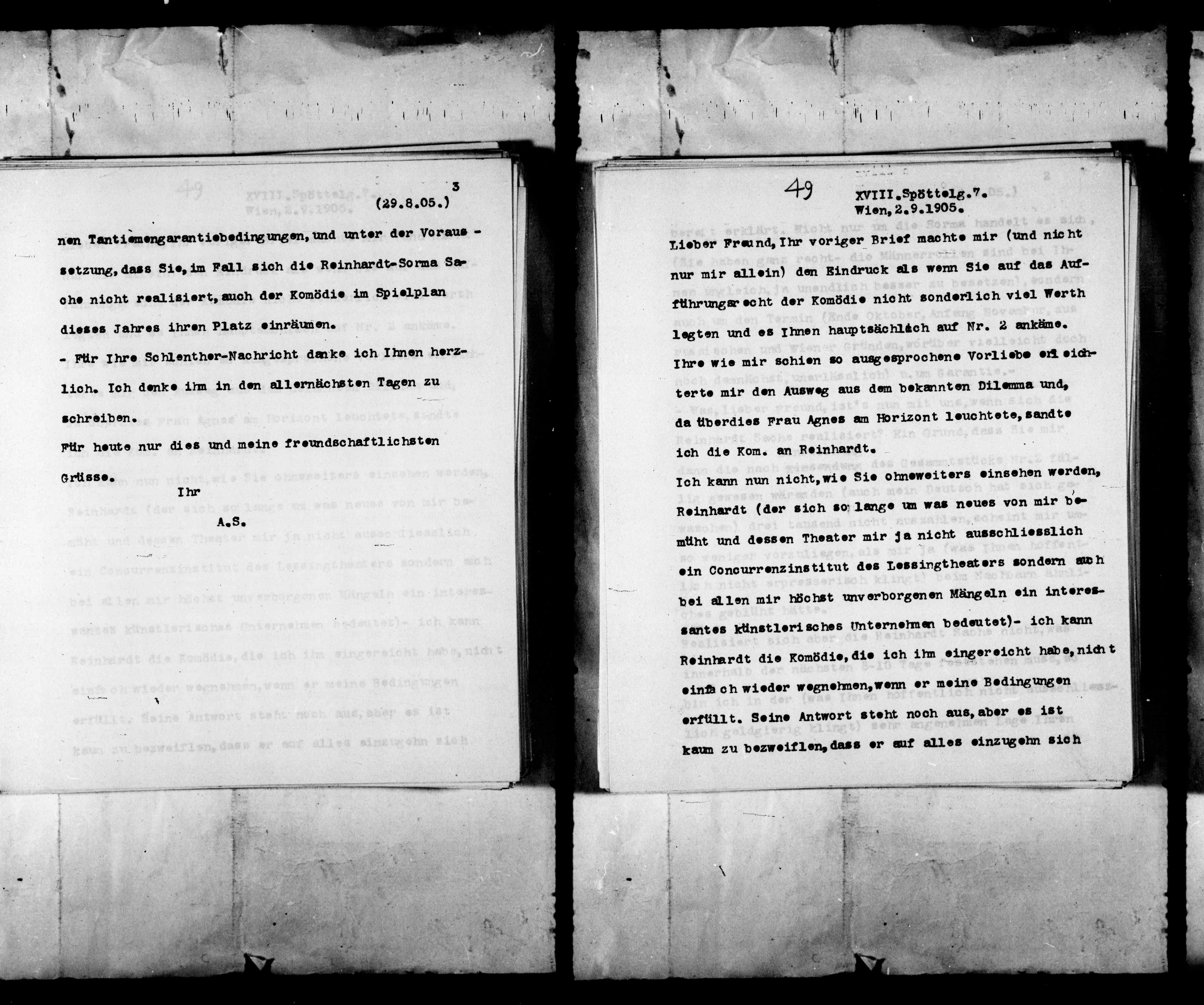 Reinhardt die Komödie, die ich ihm eingereicht habe, nicht