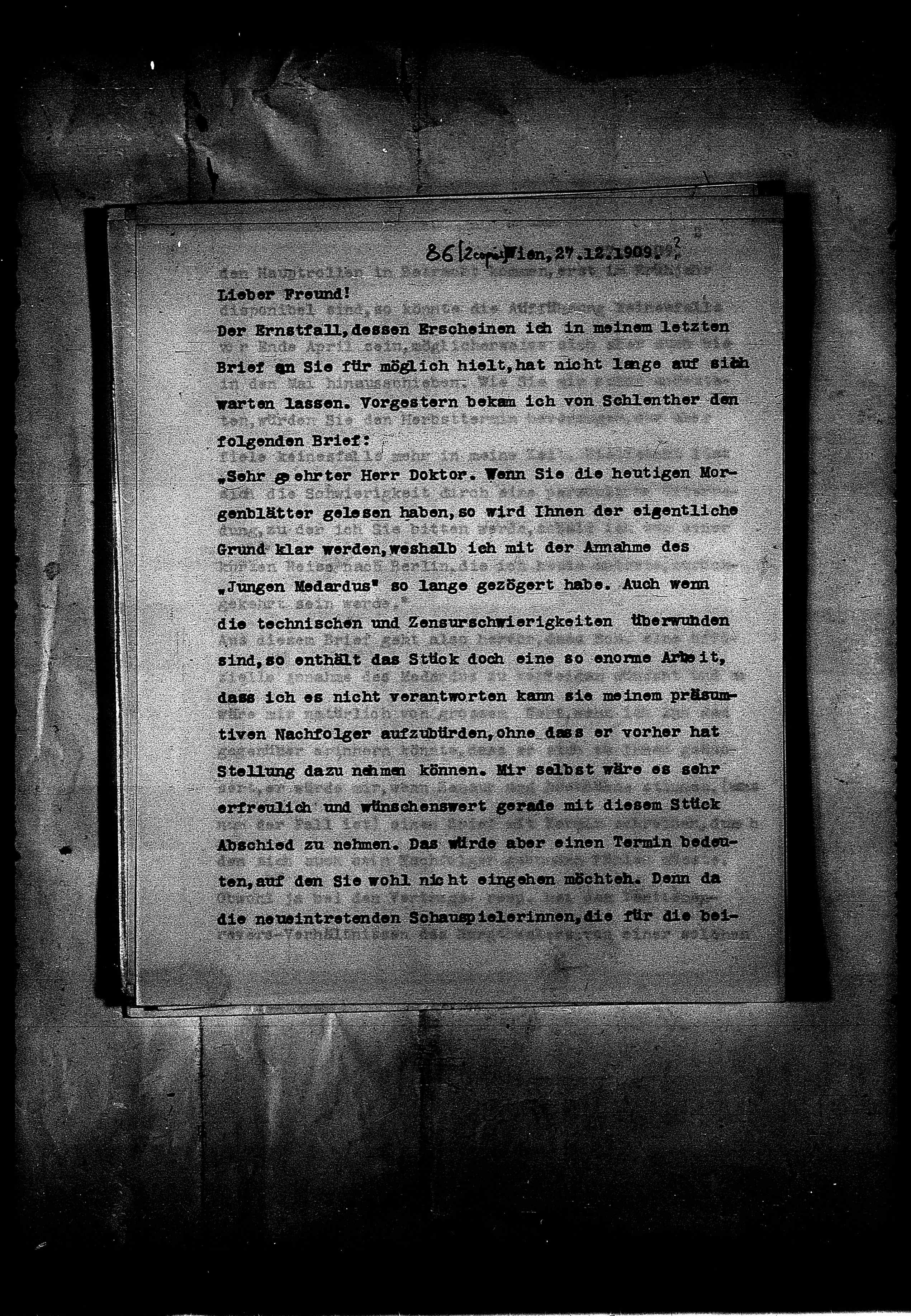 warten lassen. Vorgestern bekam ich von Schlenther den