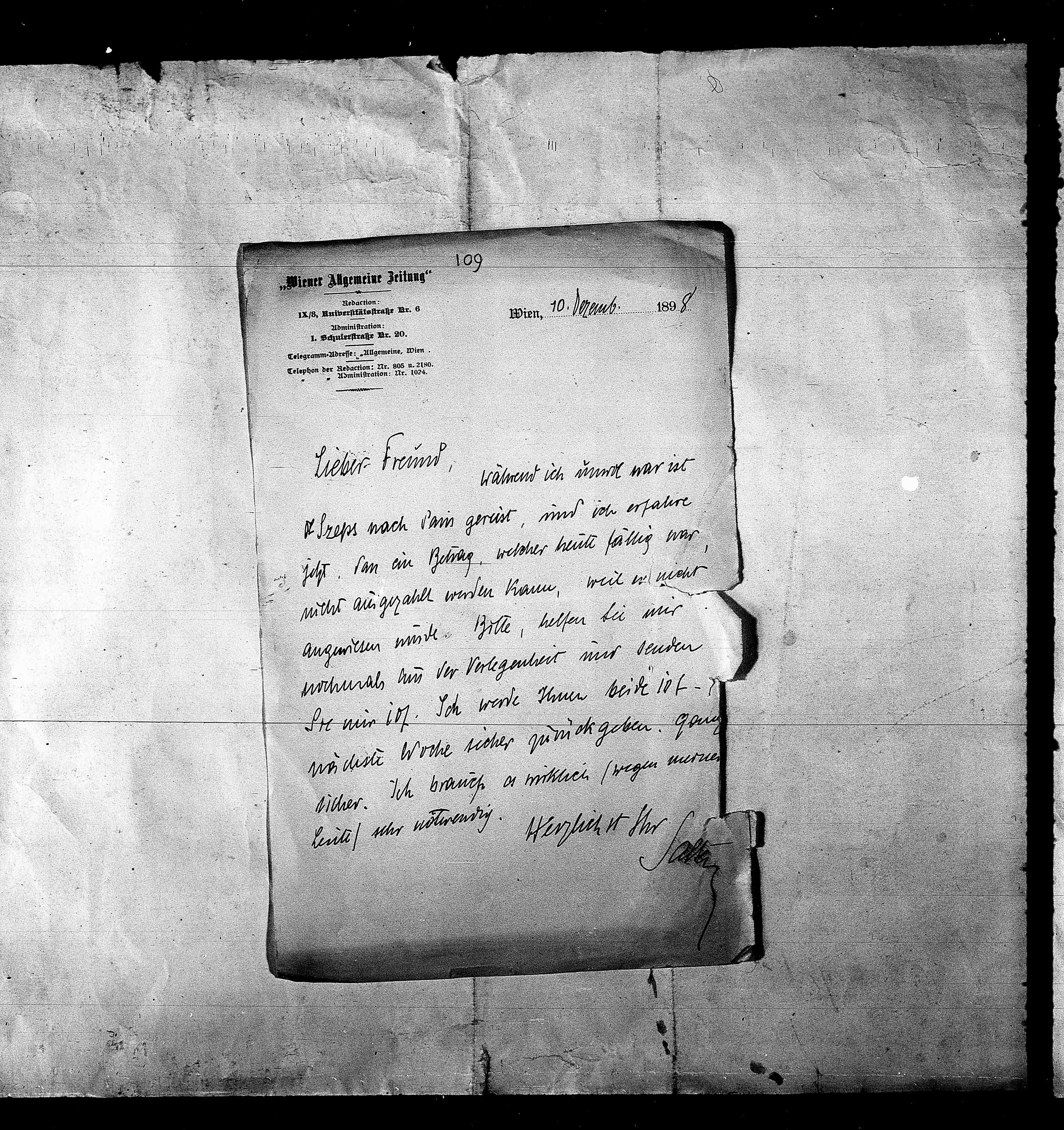 Wien, 10 Dezemb. 189.8.