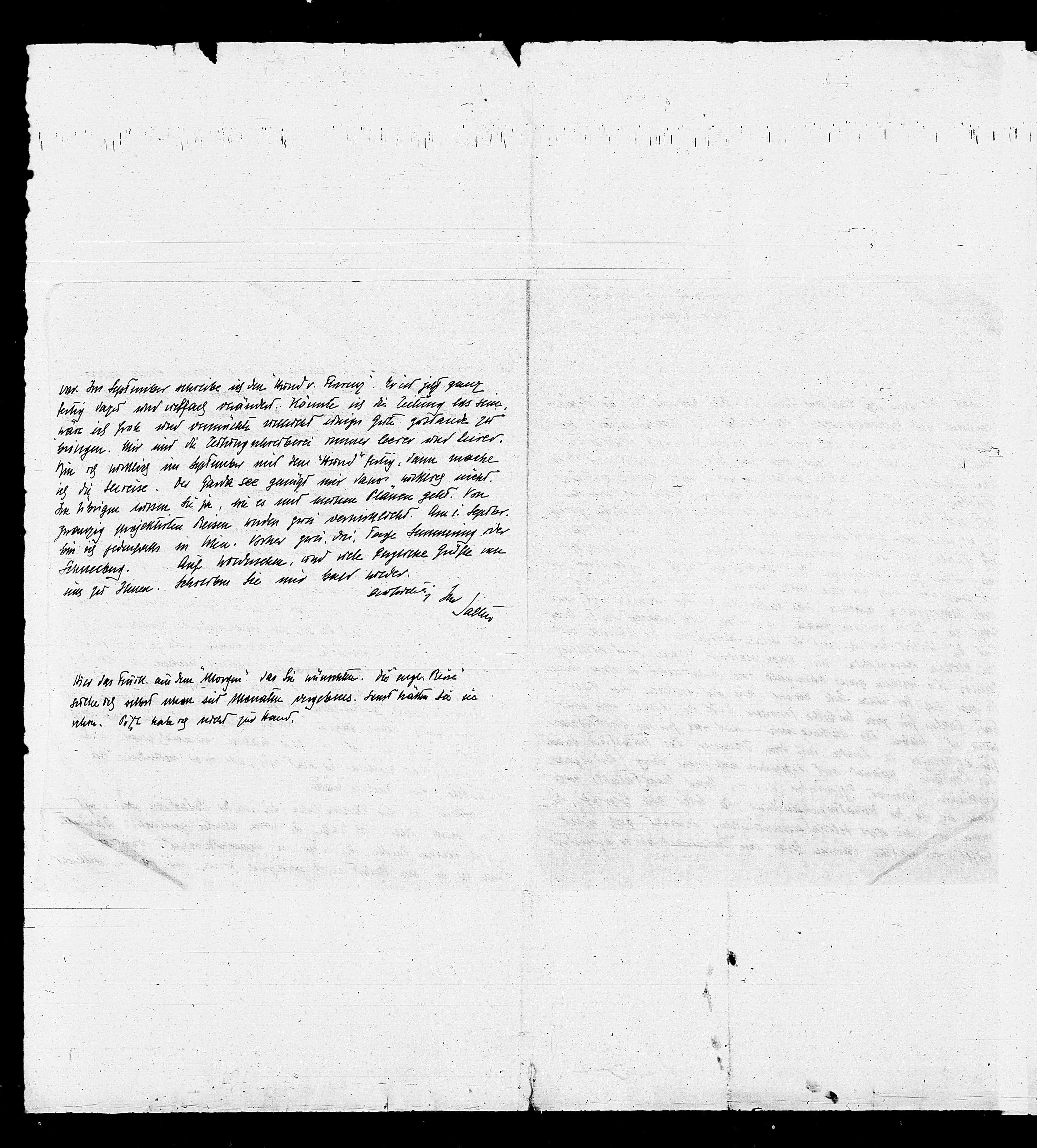 Hier das Frück. aus dem "Morgen“, das Sie münschten. Die engl. Reise
