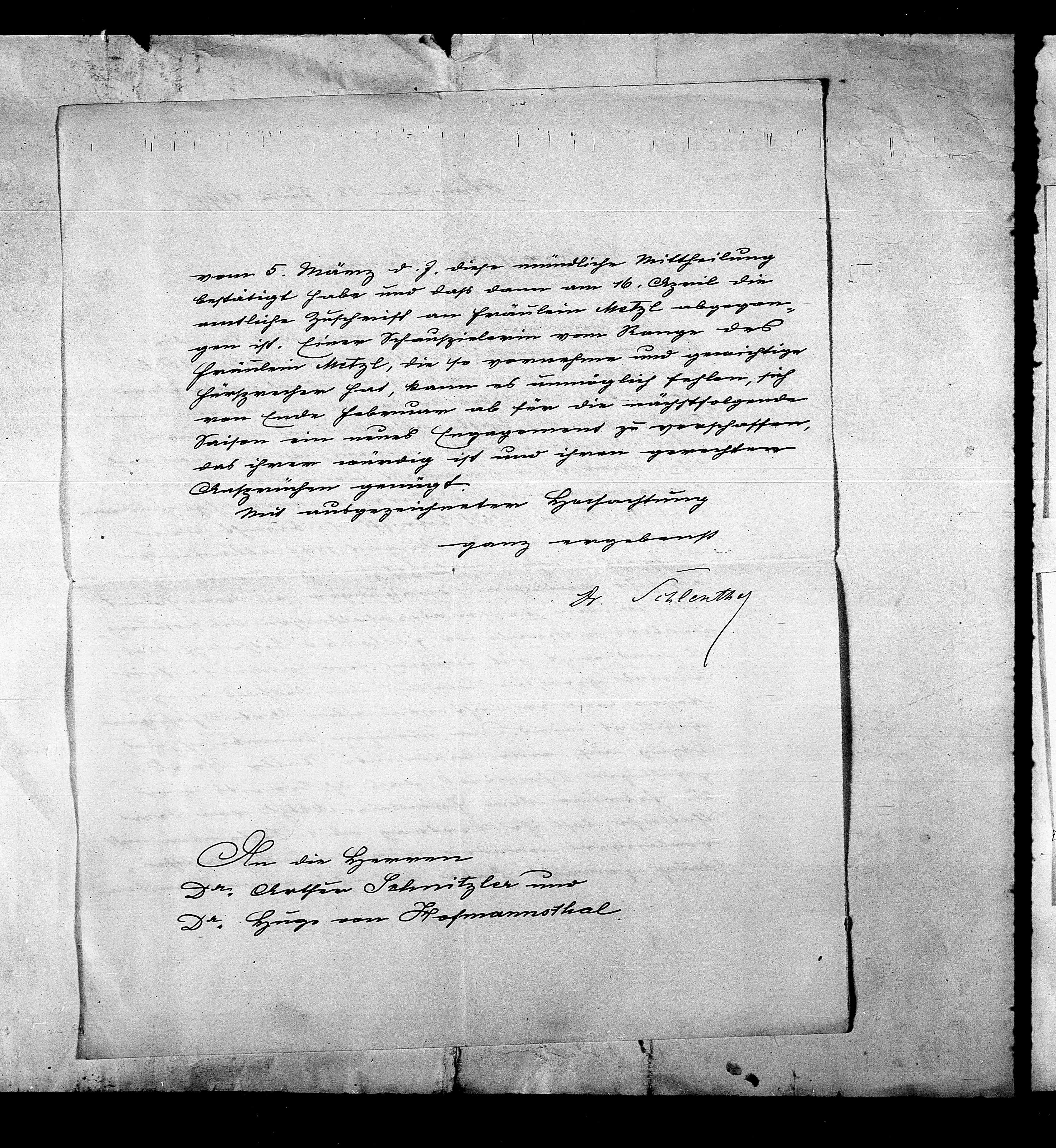 eintliche Zuschrift an Fräulein Metzl abgegon¬