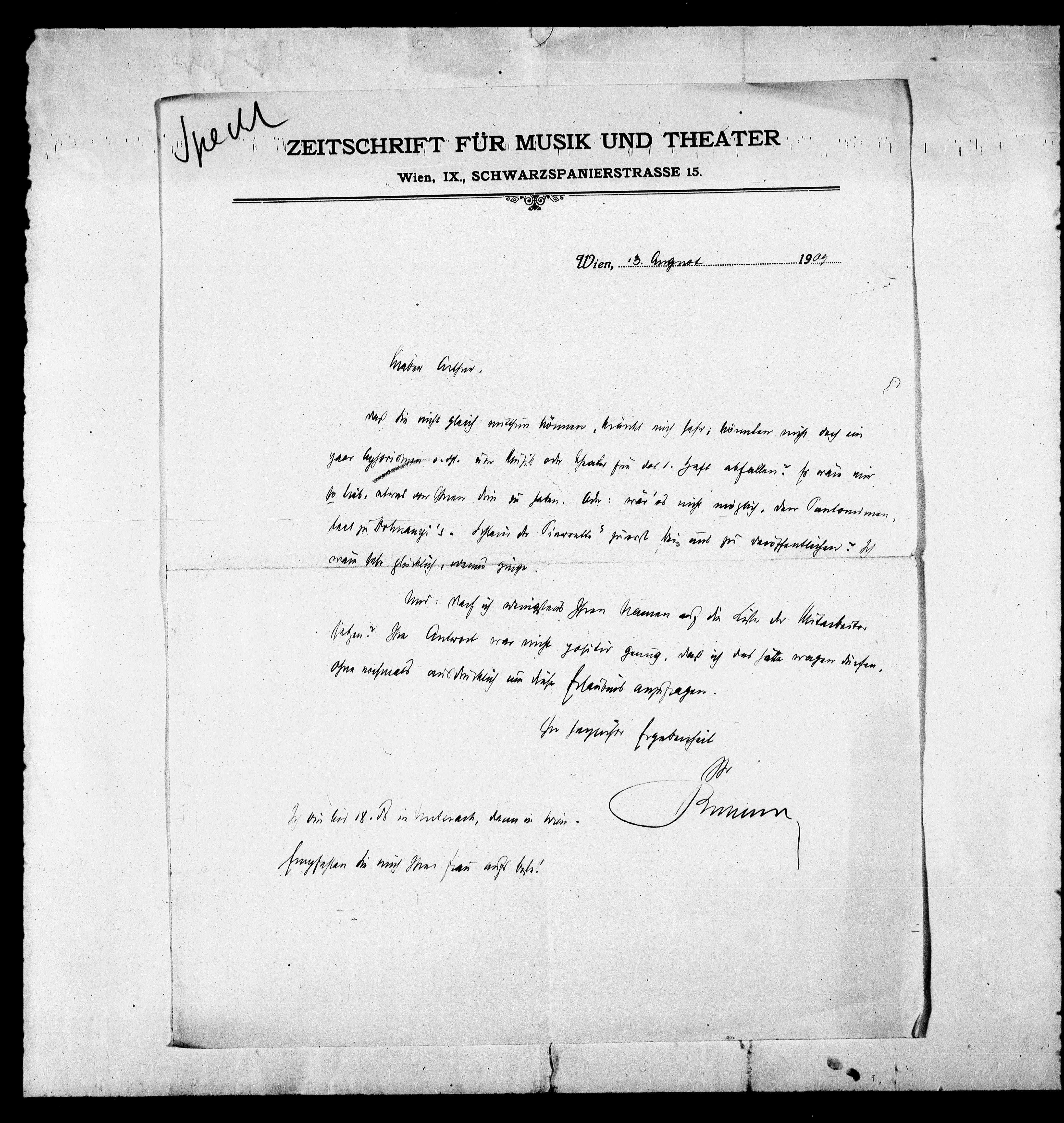 teil zu Dohnangi’s. Ichlein der Pierrette“ zuerst kein uns zu veröffentlichen. Z