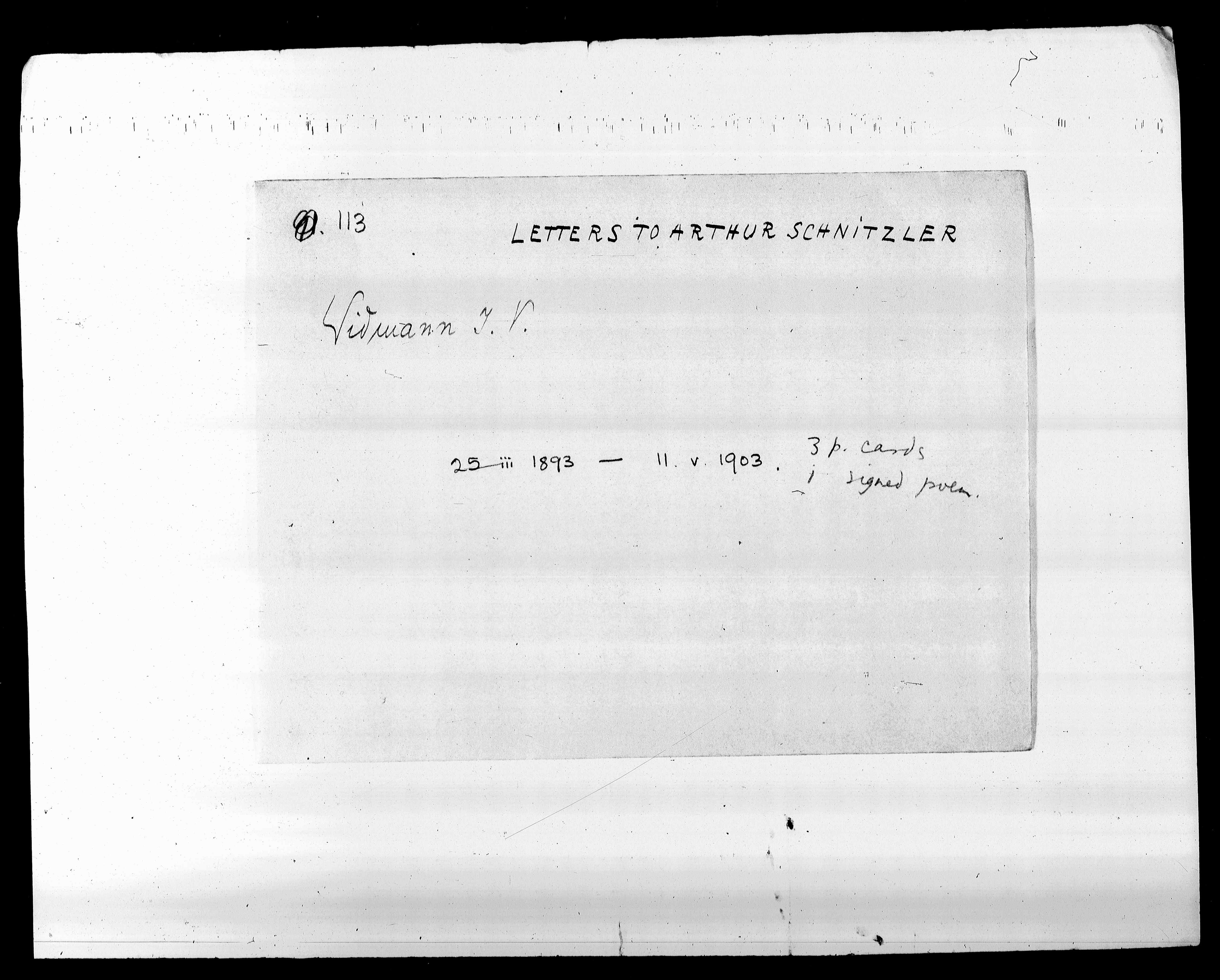 B113: Widmann, J. V., Seite 2, in: Mikroverfilmung des Cambridger Nachlasses. Hg. Peter Andorfer, Martin Anton Müller und Laura Untner, Austrian Centre for Digital Humanities and Cultural Heritage, Wien 2024, https://schnitzler-mikrofilme.acdh.oeaw.ac.at/1416734_0002.html