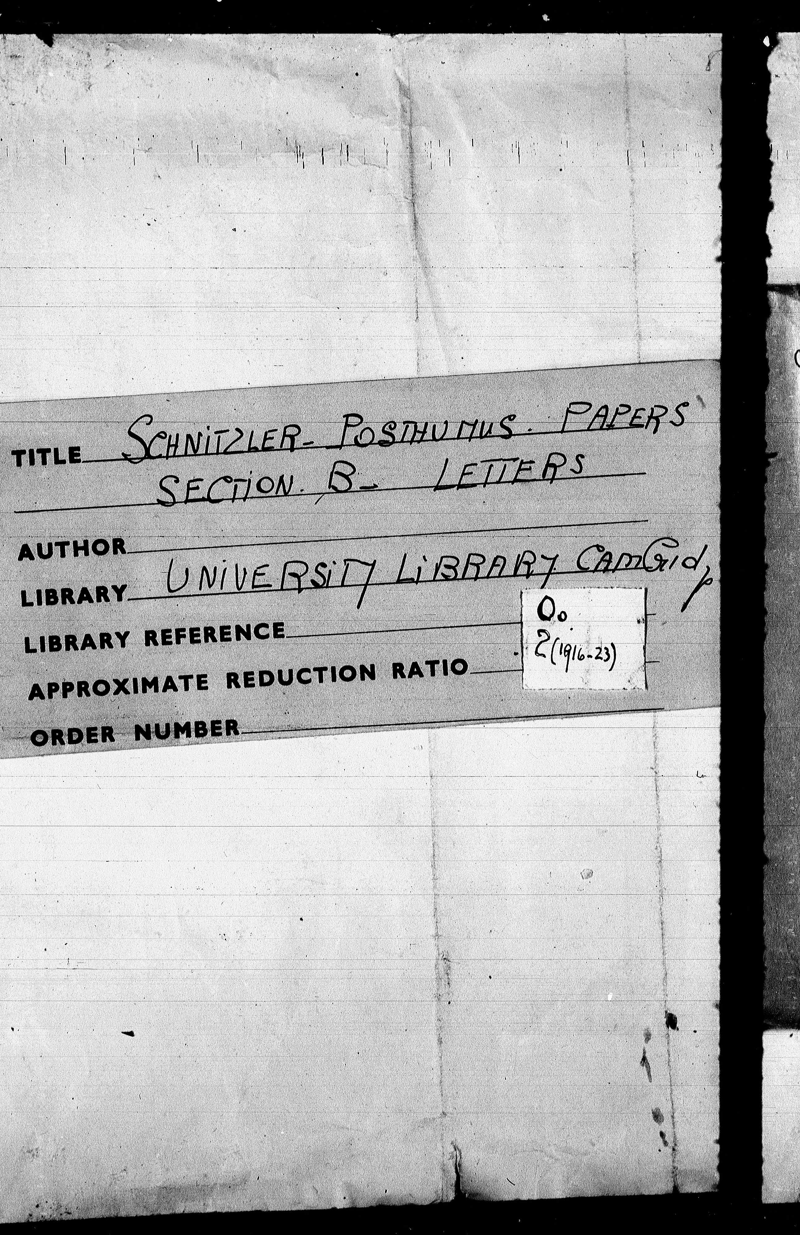 B121: Fischer, Salomo_1916–1923 Arthur Schnitzler an SF Durchschläge, Seite 1, in: Mikroverfilmung des Cambridger Nachlasses. Hg. Peter Andorfer, Martin Anton Müller und Laura Untner, Austrian Centre for Digital Humanities and Cultural Heritage, Wien 2024, https://schnitzler-mikrofilme.acdh.oeaw.ac.at/1416739_0001.html