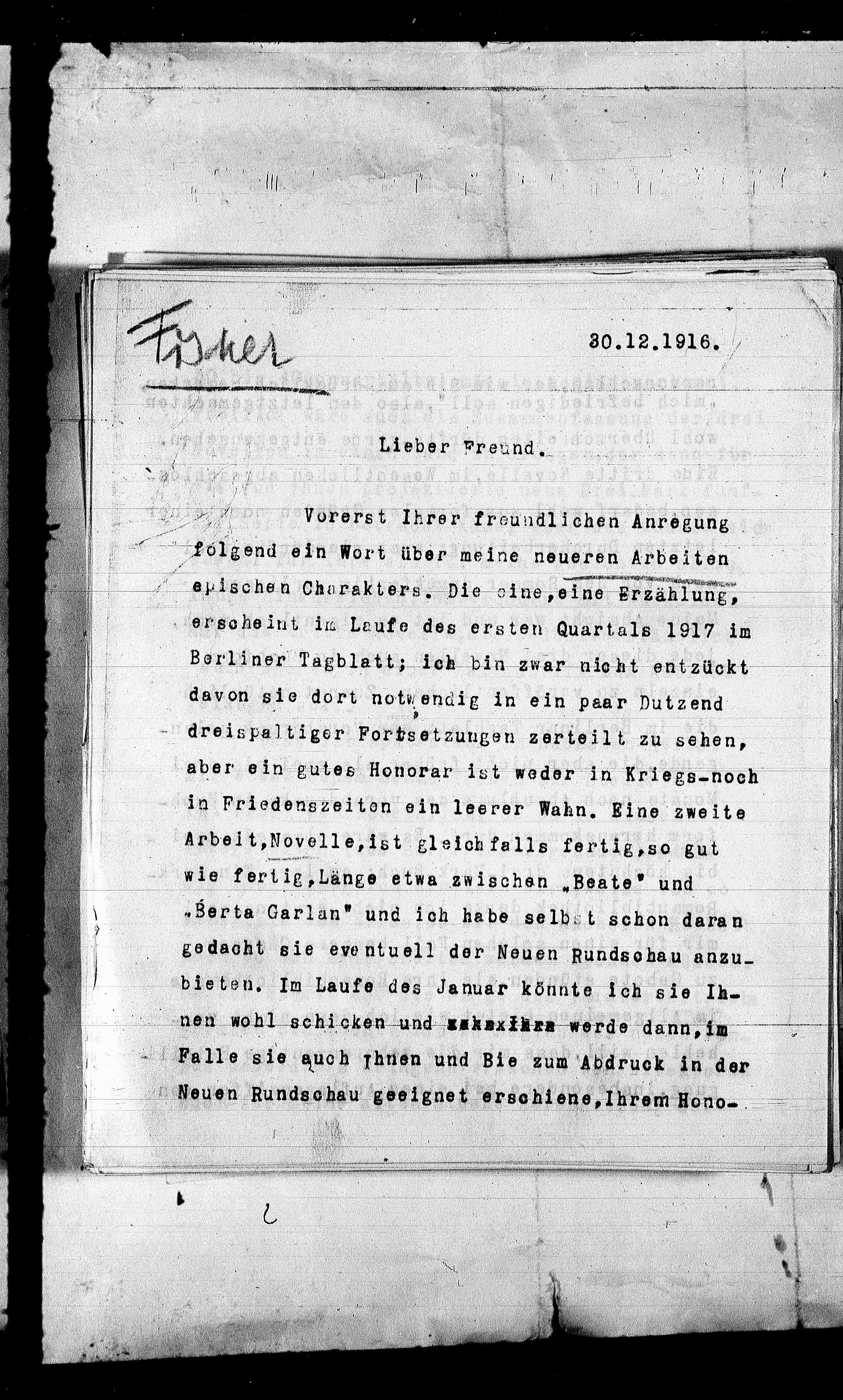 Arbeit,Novelle,ist gleichfalls fertig,so gut
