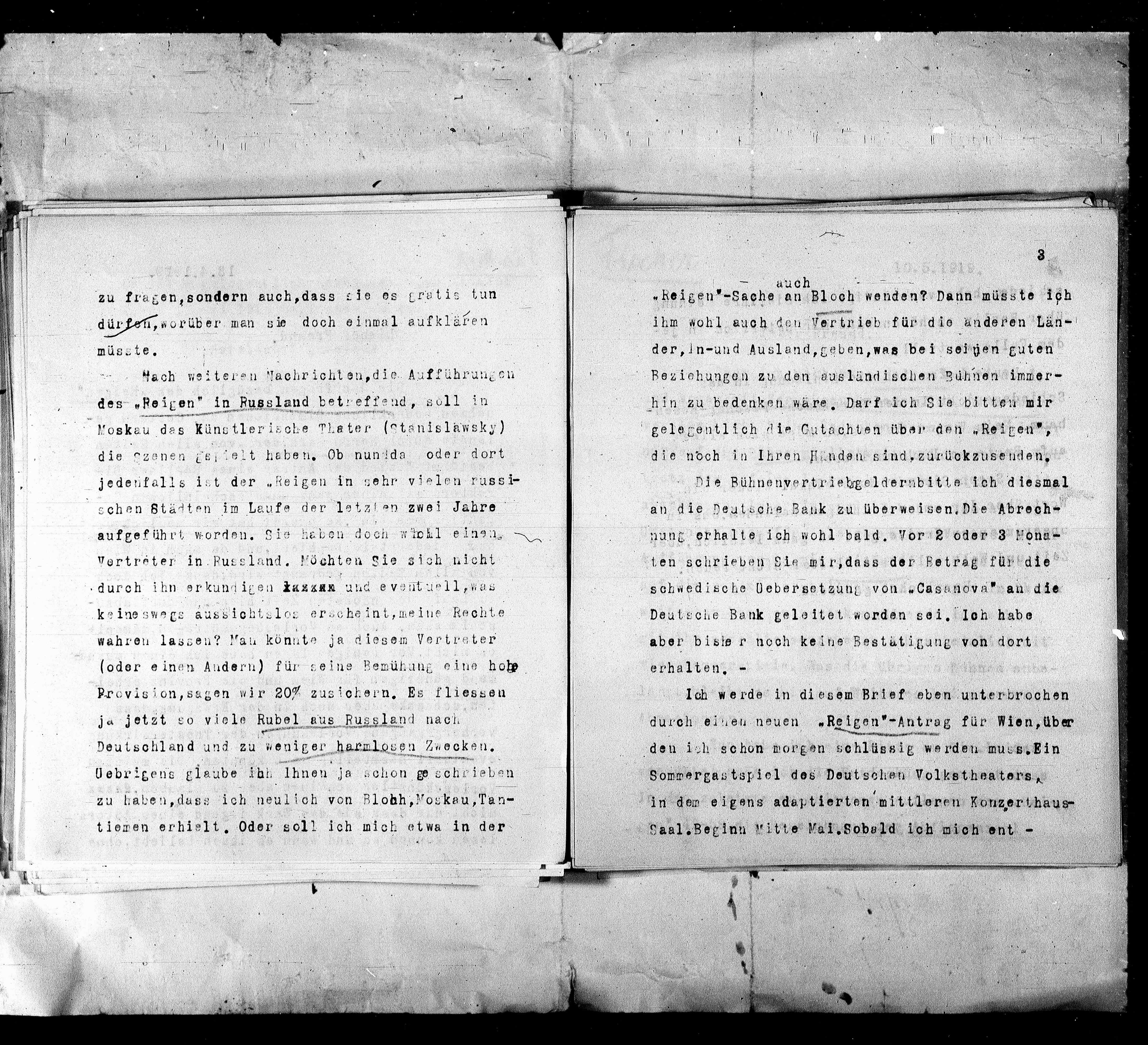 gelegentlich die Gutachten über den „Reigen“,