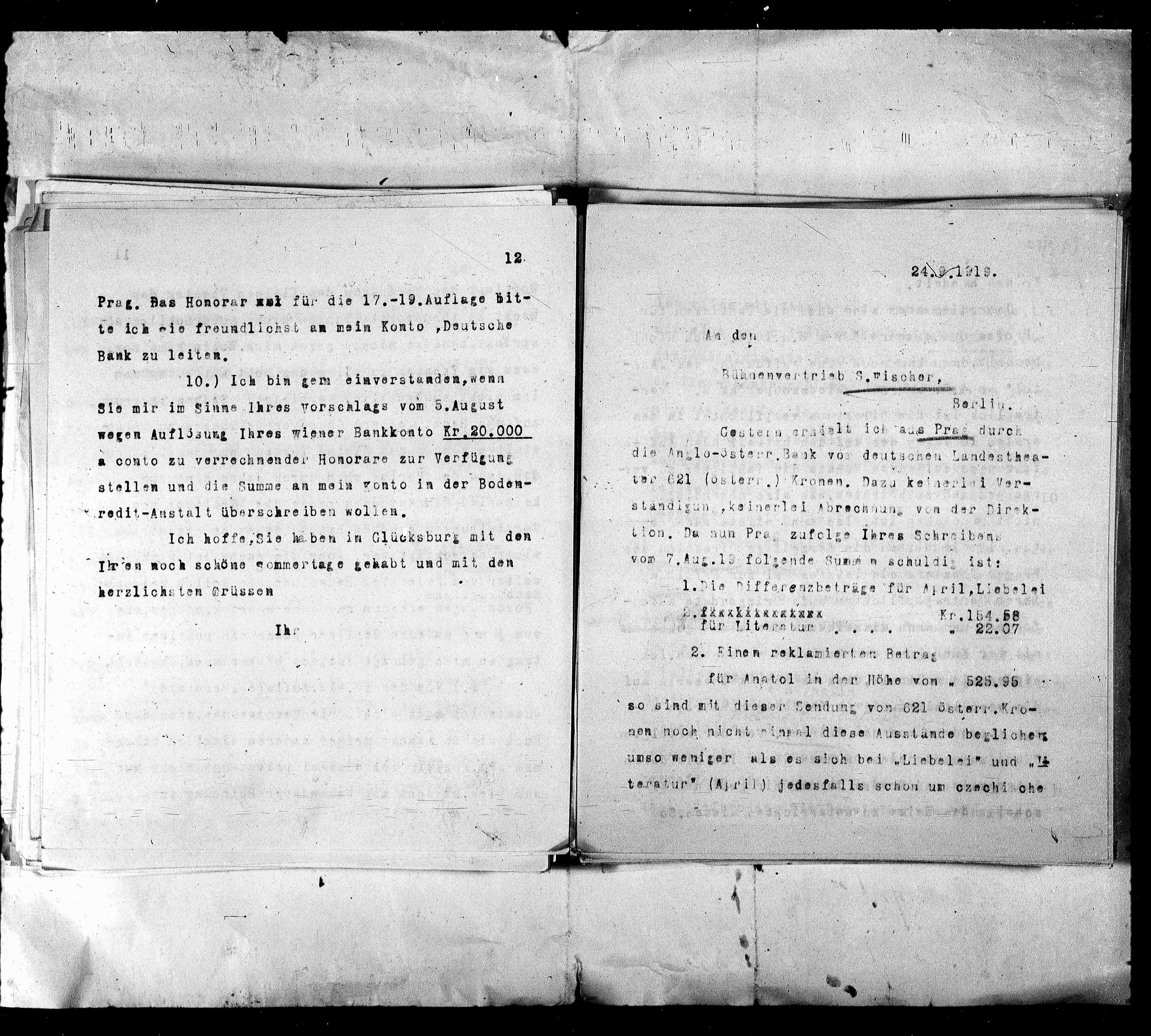 wegen Auflösung Ihres wiener Bankkonto Kr.20.000