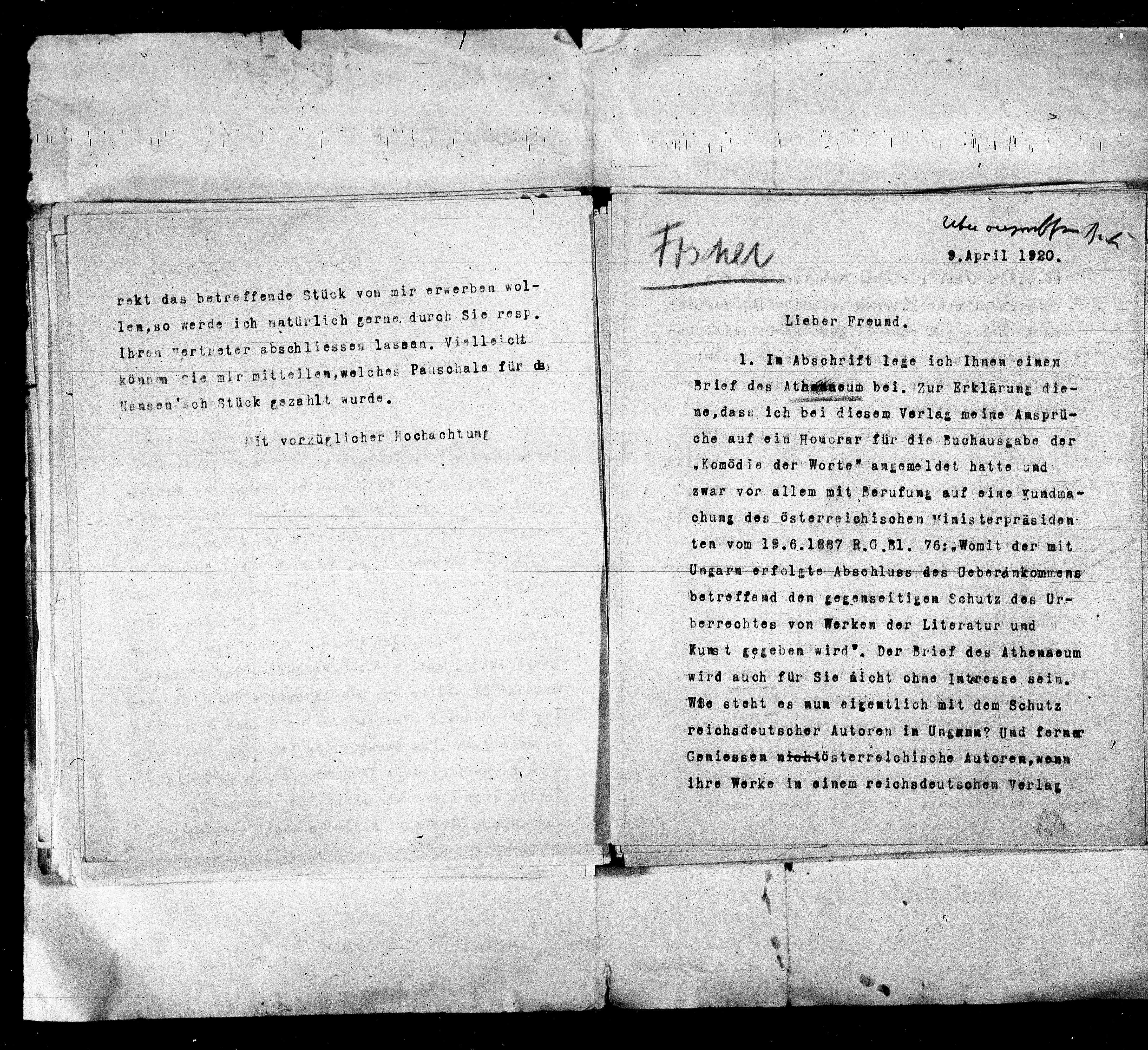 Brief des Ath###aeum bei. Zur Erklärung die-