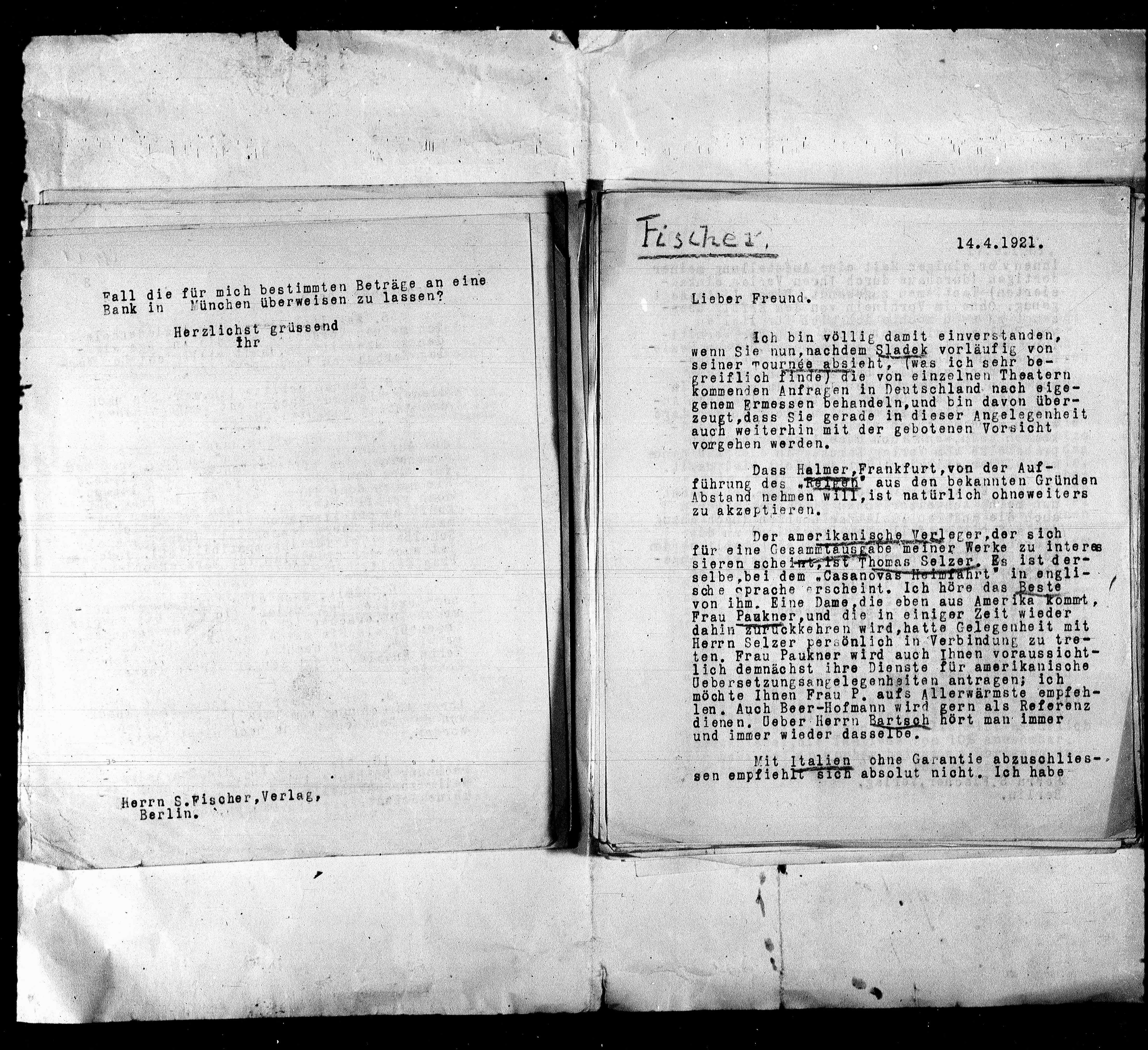 Herrn S.Fischer,Verlag,