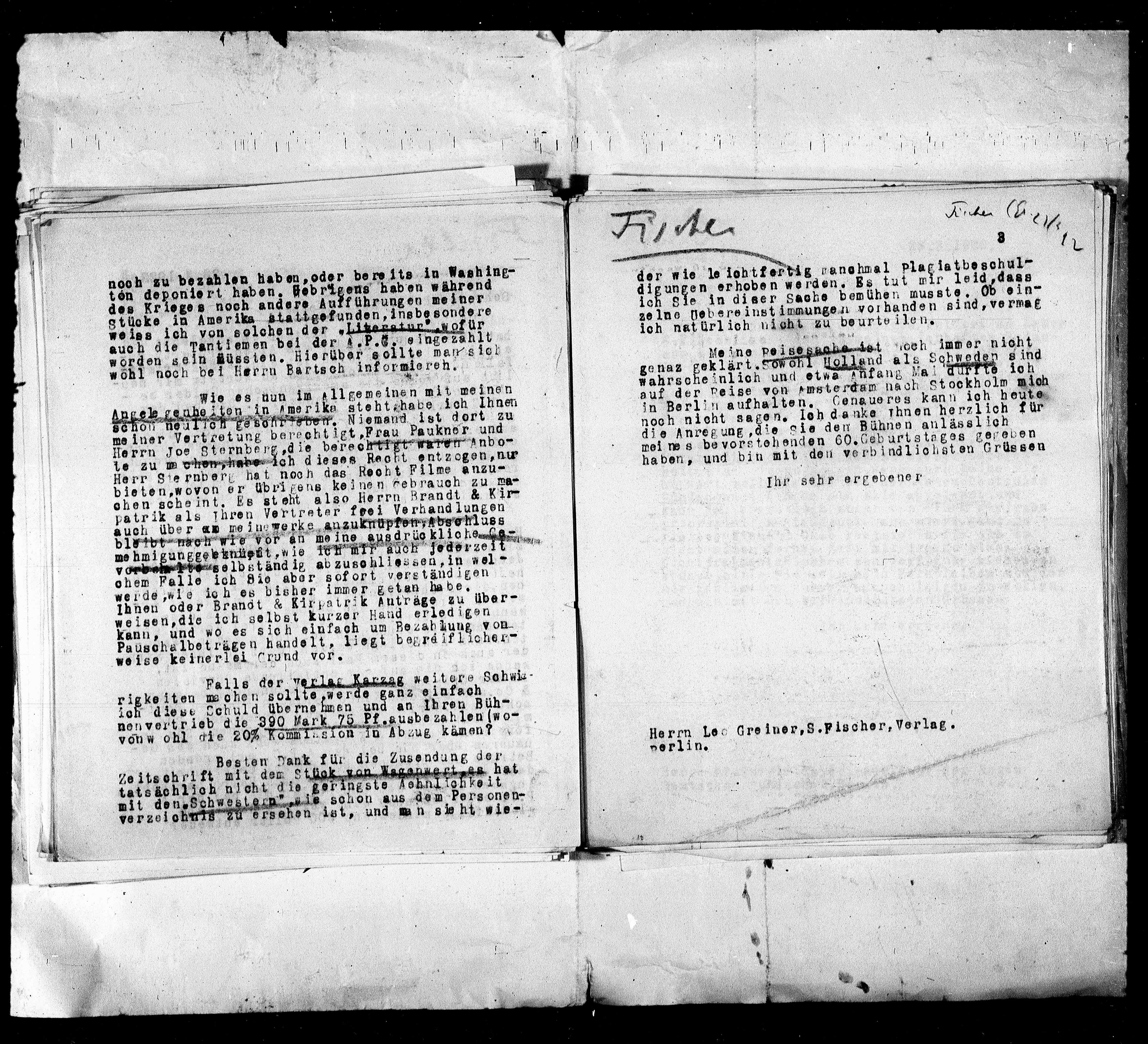 Herrn Leo Greiner,S.Fischer,Verlag.